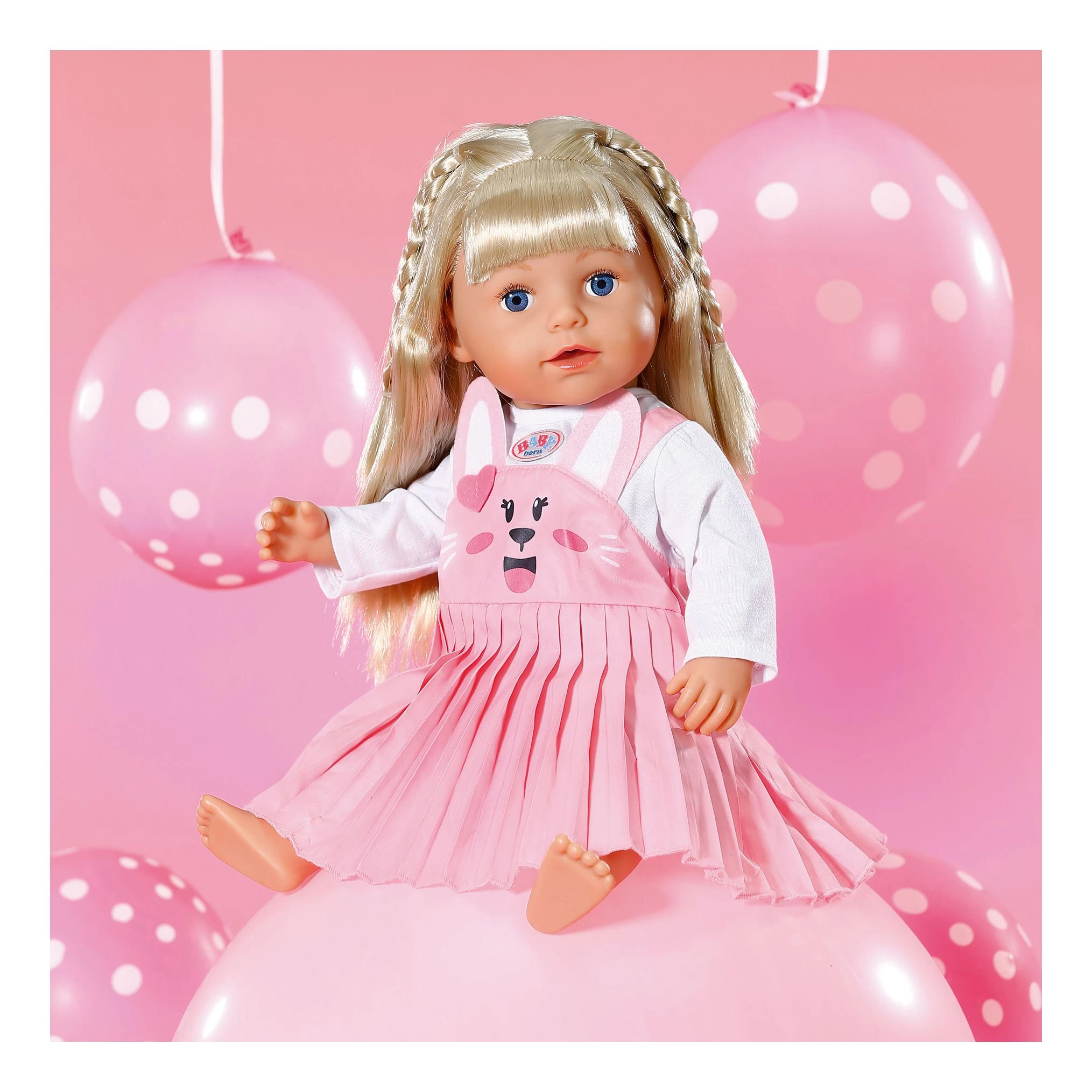 Cute and fun, this bunny themed dress is one of BABY born’s favourites! Little ones will love dressing their BABY born doll in the pink dress with bunny face – the ears are SO cute! Plus it comes with a long sleeved top which is attached. Ideal for playing dress up with BABY born, the Bunny Dress is the perfect addition to BABY born’s wardrobe. BABY born Bunny Dress 43cm including clothes hanger. To fit dolls up to 43cm, suitable for children aged 3+.