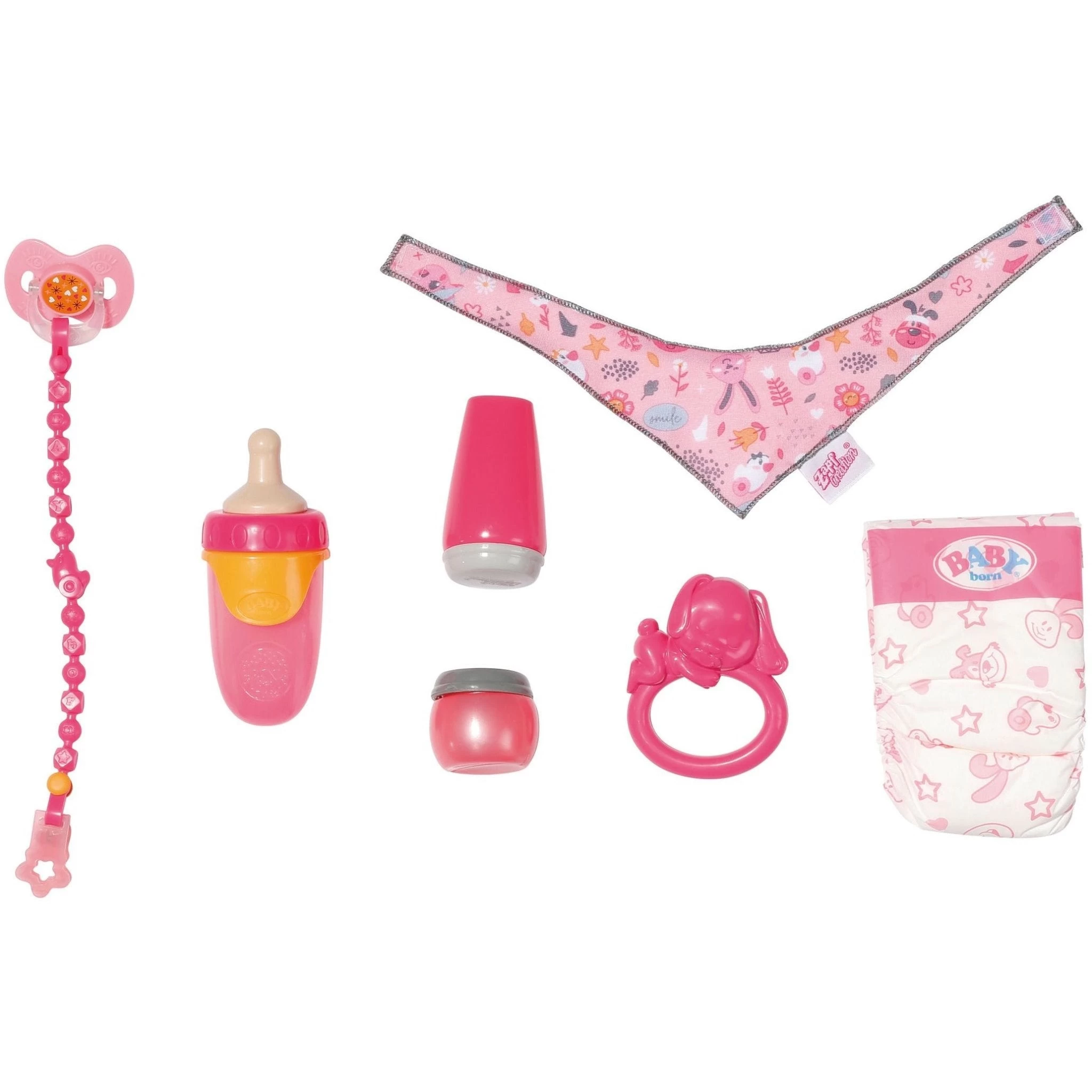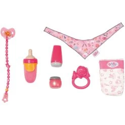 • Includes 8 starter accessories; bottle, nappy, dummy and more!