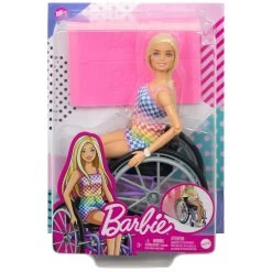 • Barbie doll sparks play potential with a manual purple wheelchair and a pink ramp that help her get easily in and out of the Barbie Dreamhouse (sold separately, subject to availability).
