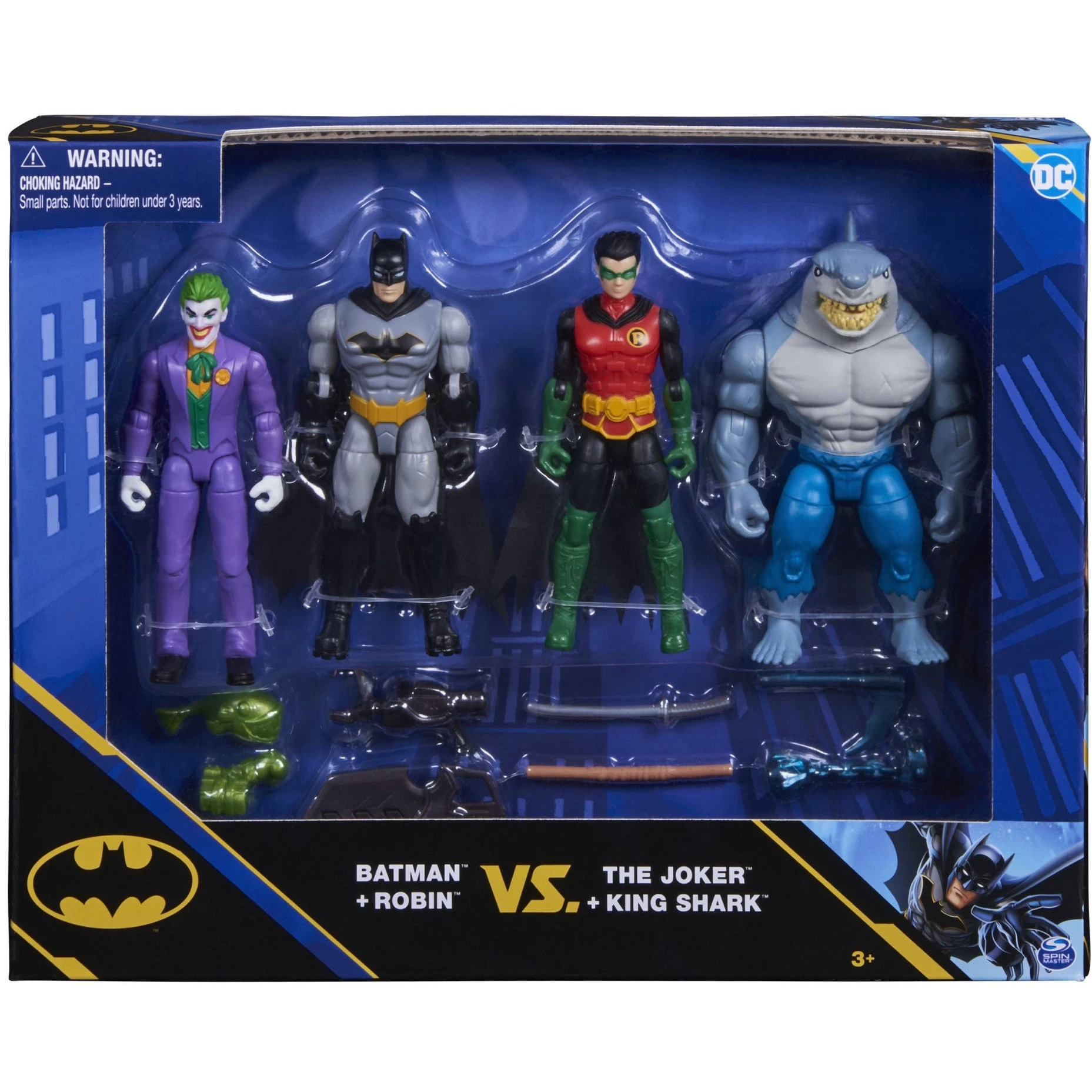 - 4 ACTION FIGURES: Includes 4 action figures of the greatest Super Heroes and Super-Villains from Gotham City Bring home Batman, Robin, The Joker, and King Shark