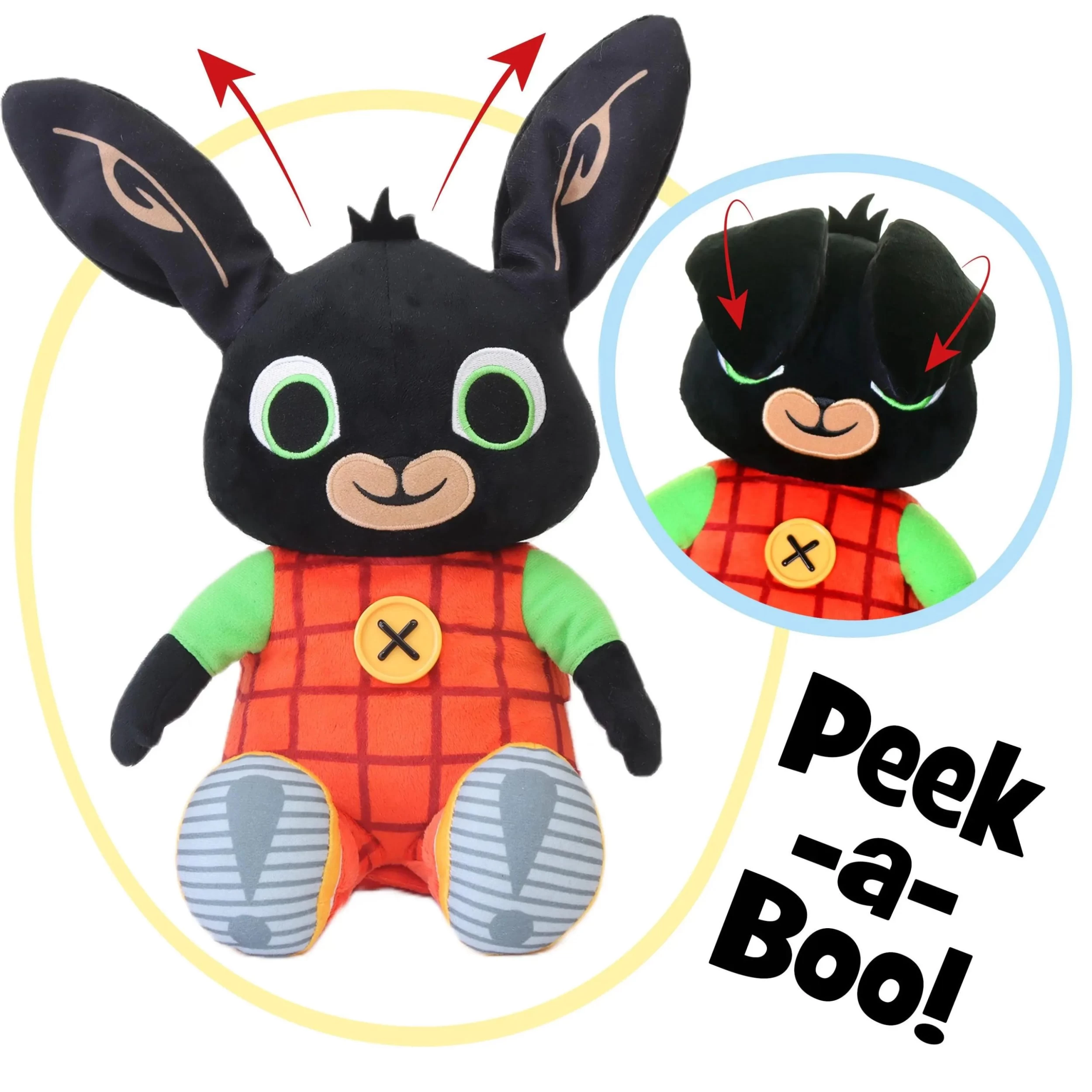 • Bing hides his eyes, wiggles his ears and plays Peek-A-Boo – he wants to play along with you!