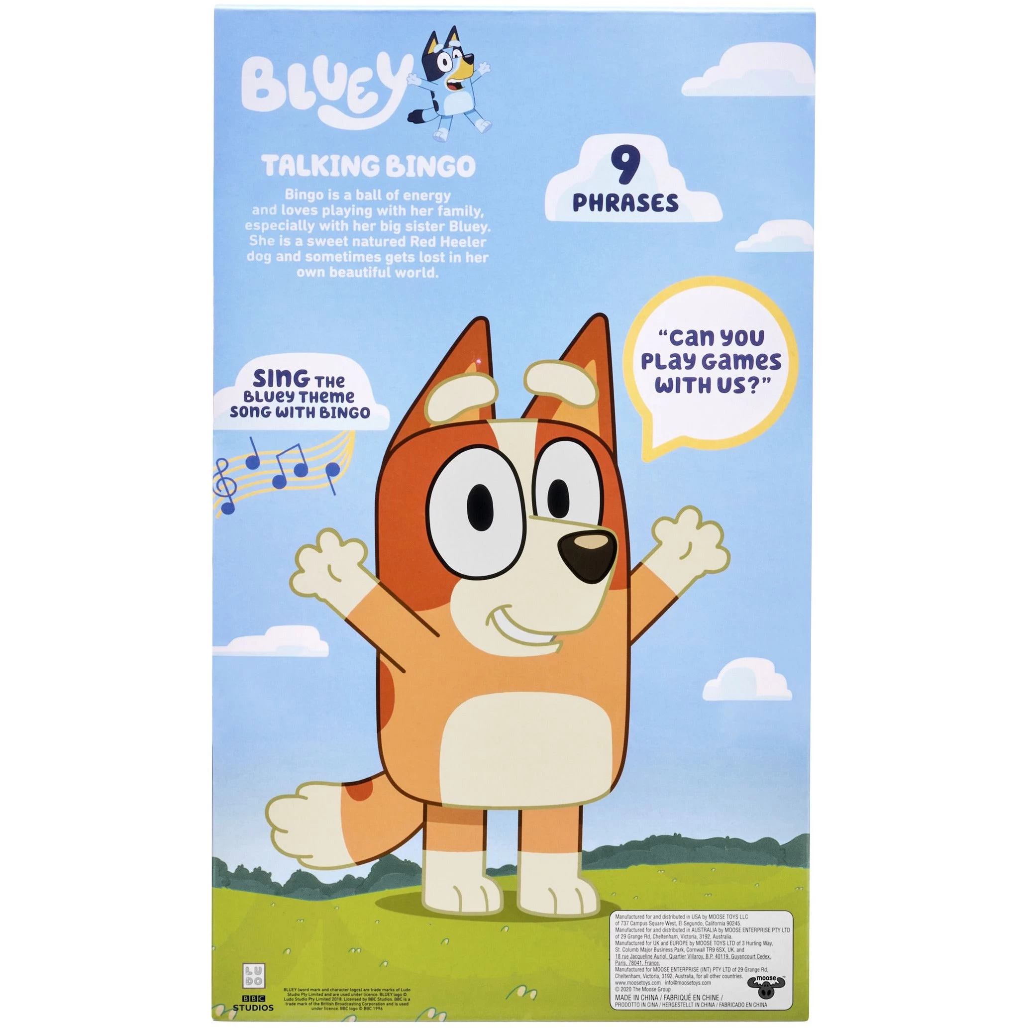 Bring the fun and imaginative play of Bluey home with the Talking Bingo 12″ Plush! Bingo is a ball of energy and loves playing with her family, especially with her big sister Bluey. Press Bingo’s tummy to hear 9 fun phrases from the Bluey TV show. You can even sing along with Bingo to the Bluey theme song! Bingo is the perfect size for cuddles. So soft to hold and made with soft deluxe fabrics and detailed stitching, this talking plush doubles as a soft and cuddly toy for show time or storytime. Collect all of Bluey’s plush friends and create your own Bluey adventures!
