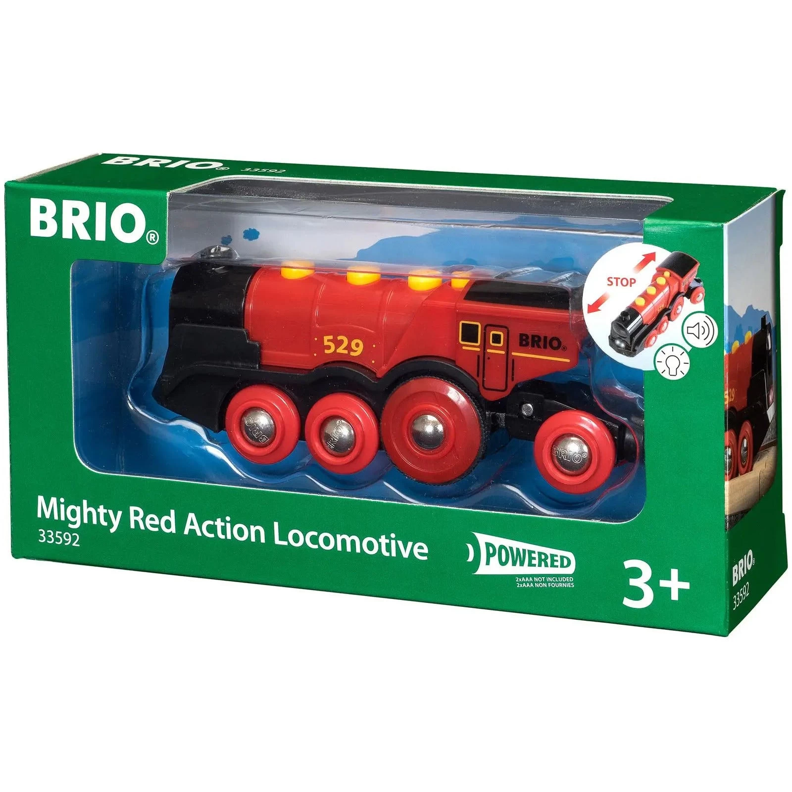 With its two front lights fully lit, full speed ahead and the unmistakable “choo-choo”, this Mighty Red Action Engine impresses even the most experienced young train driver. The toy locomotive can go full reverse whenever needed, and the switch on top allows free wheel movement without battery function. This is a durable retro design toy that allows your child’s imagination to flow. It also helps improve your child’s spatial awareness and fine motor skills. This item includes 1x Action Locomotive and measures 13.7 x 3.6 x 5cm. Crafted using FSC sourced European beech wood and high-quality plastics the BRIO World railway range is suitable for ages 3 Years and up and make ideal gifts for boys and great gifts for girls.