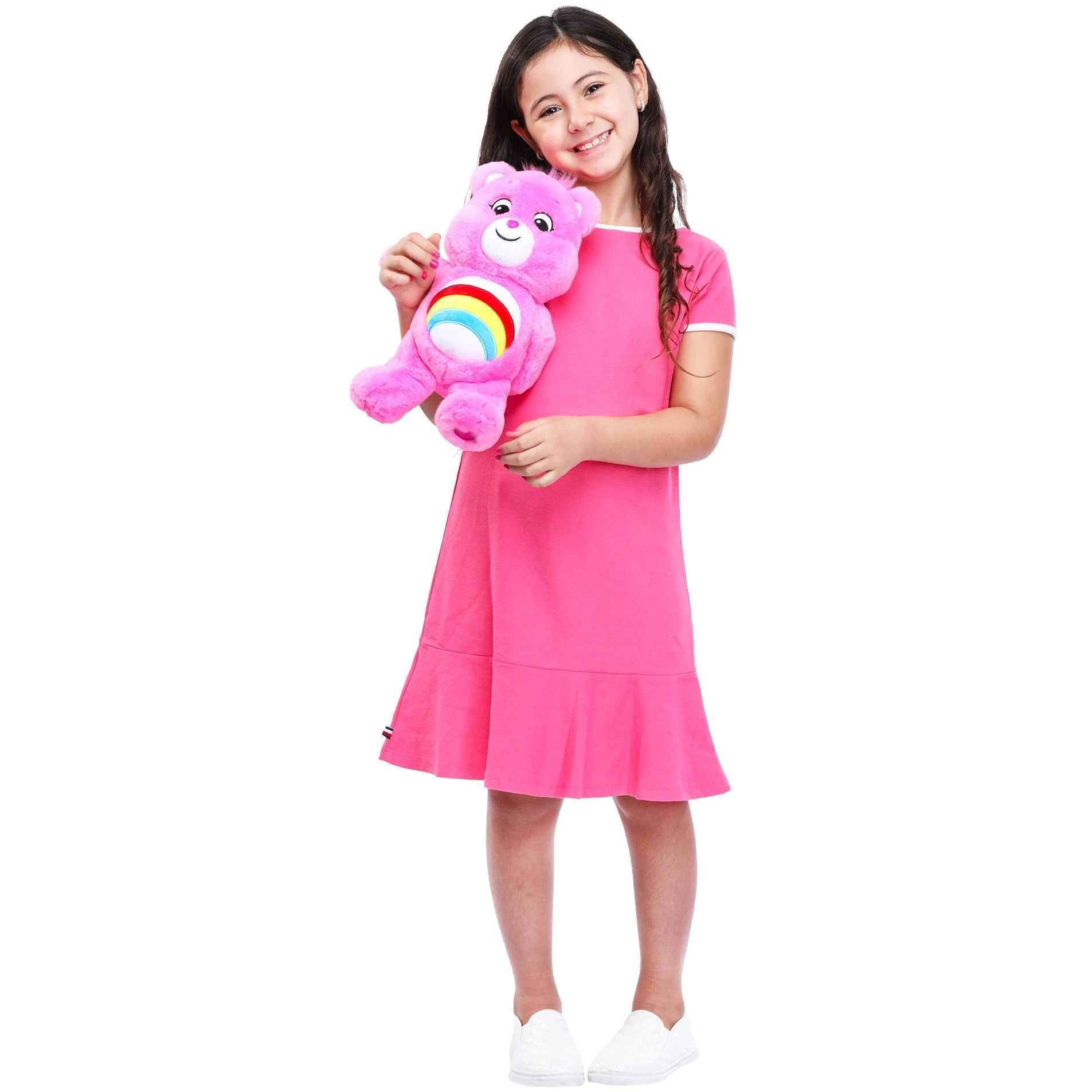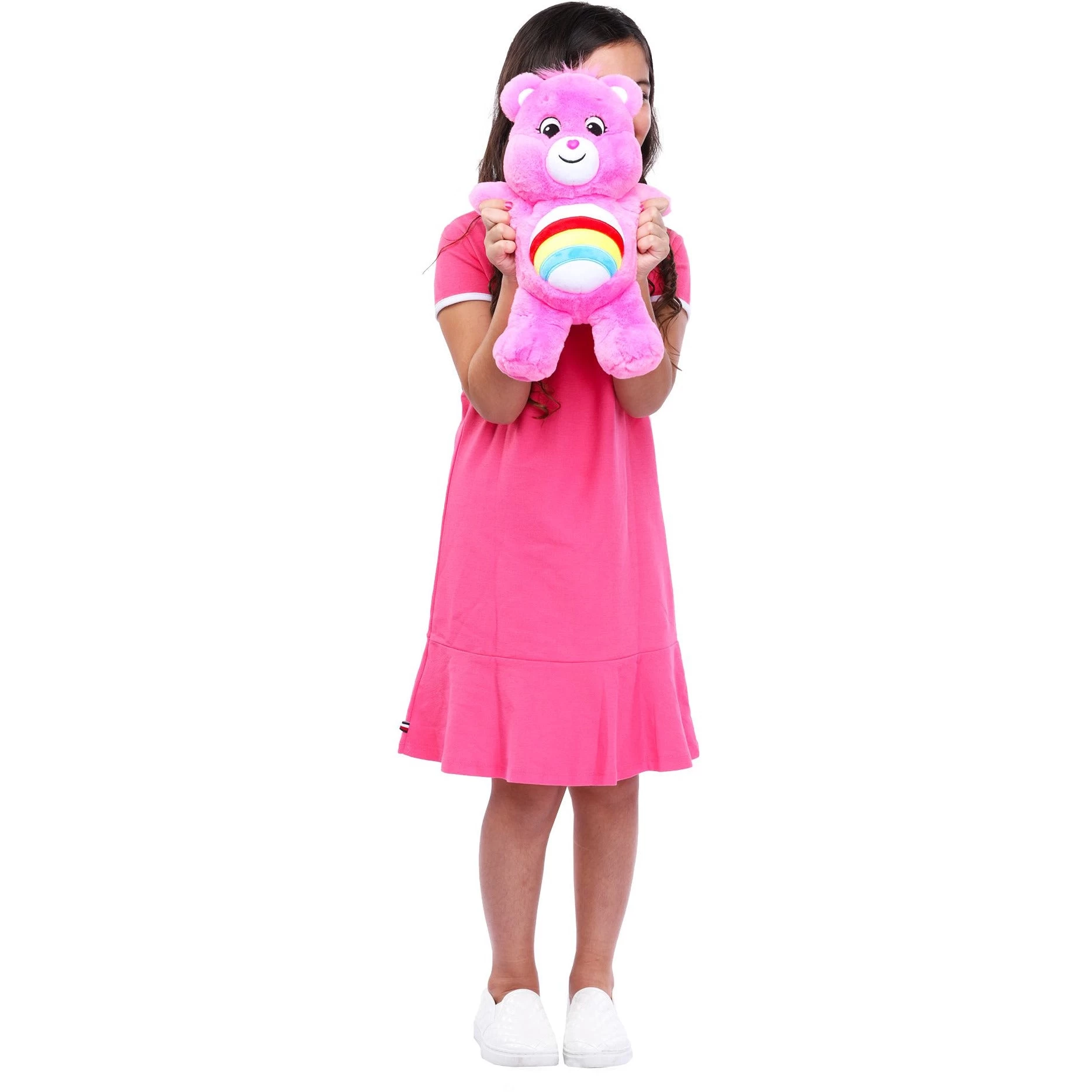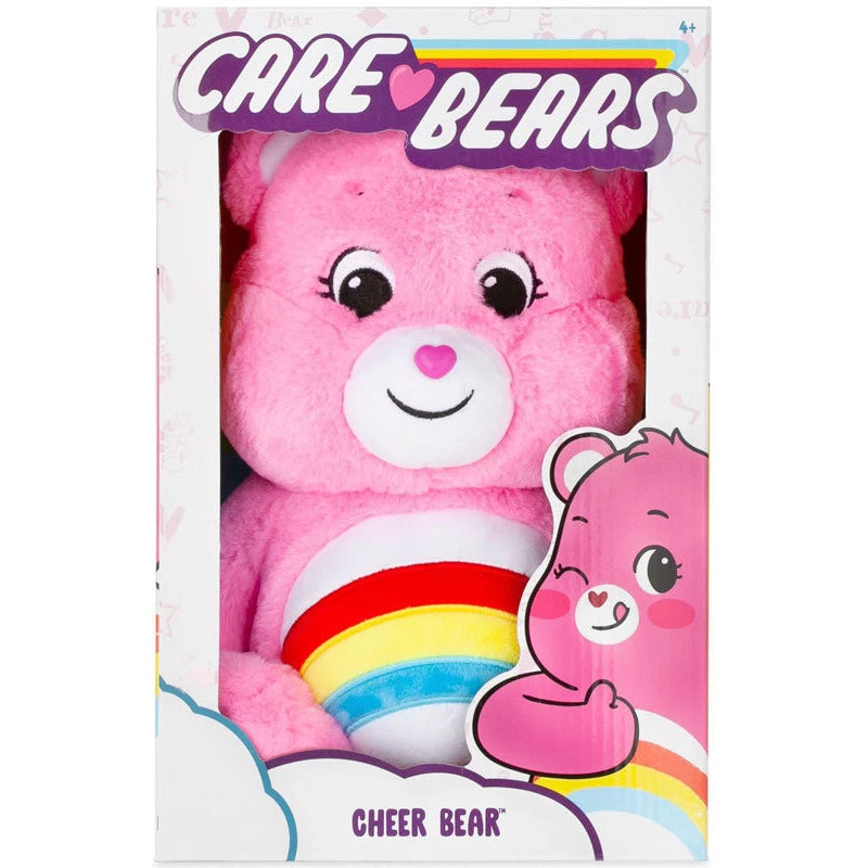 Cheer Bear is a very happy Care BearTM who helps others see the bright side of life. She will sometimes even do a cheer to help make someone happier! Wherever she goes, Cheer BearTM wears a belly badge of hope and happiness—a colourful rainbow.