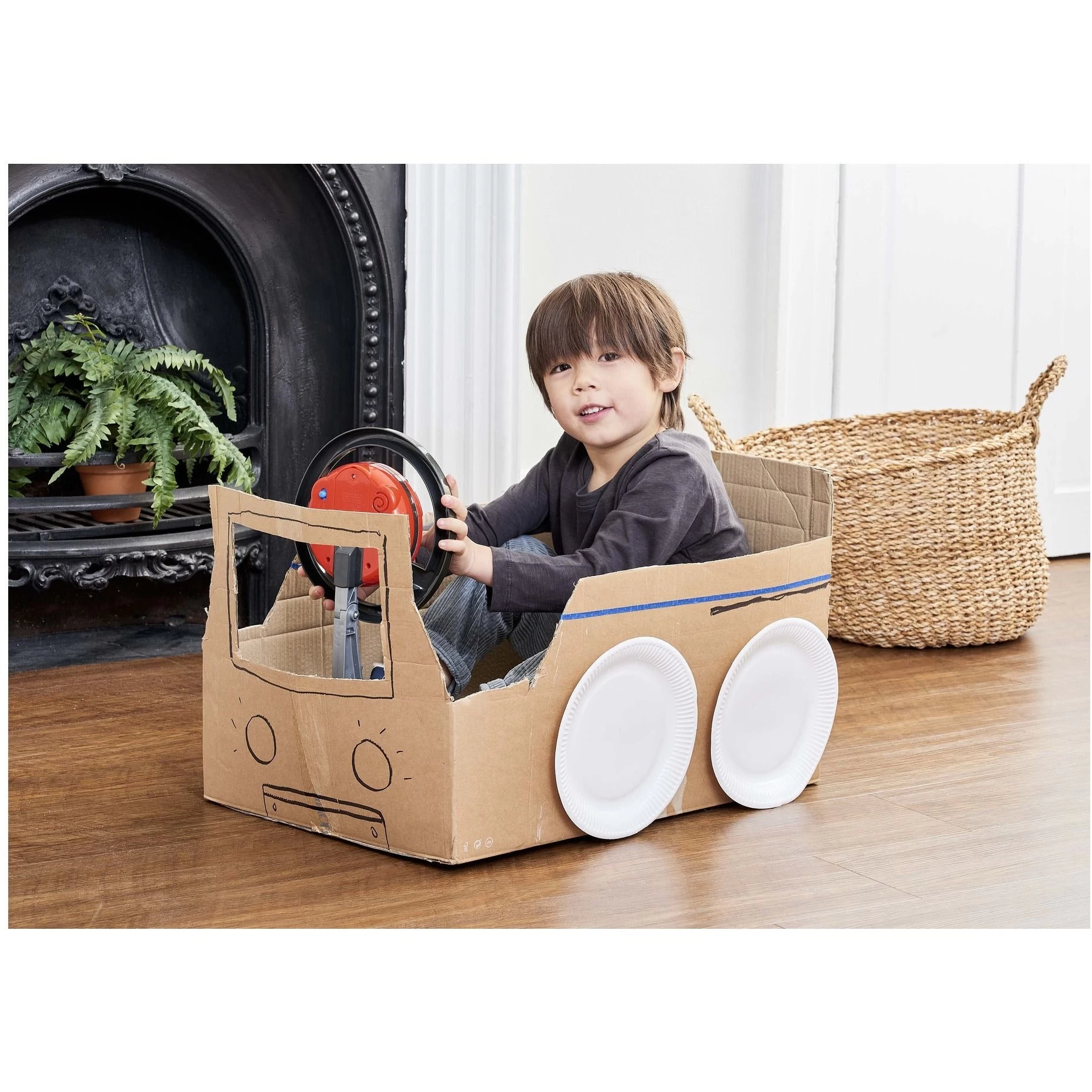The world’s first toy Sat Nav Steering Wheel for Little Drivers. The interactive ‘Sat Nav’ feature makes 12 different spoken commands and reacts to the child’s response depending on the instruction. With realistic motoring sounds, flashing lights & indicators. Requires 3 x AA batteries (not included). Suitable for ages 3+.
