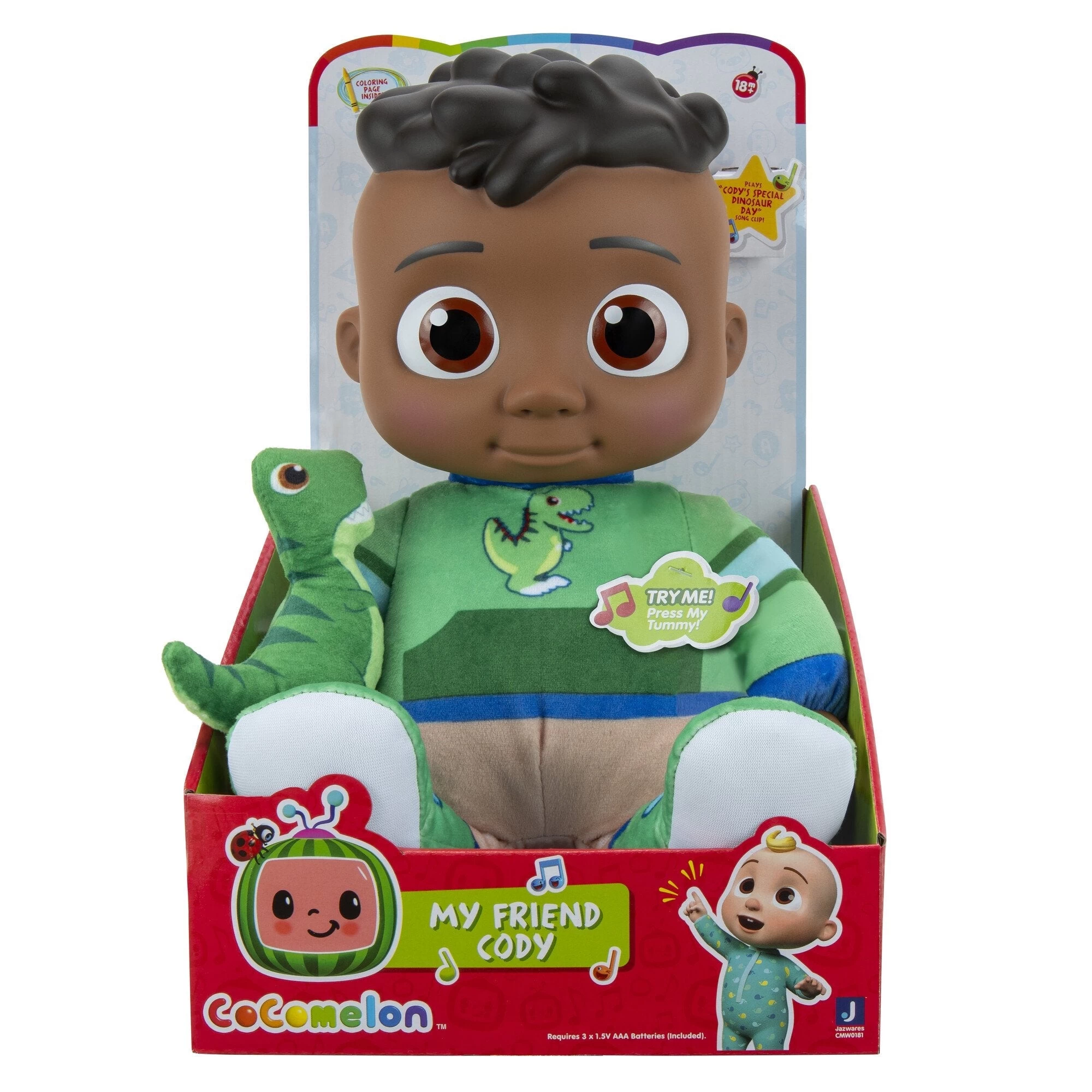 - Get to know JJ’s best friend, Cody, with this adorable plush doll. Cody is dressed in a cute green shirt featuring his favorite animal ever – a dinosaur!. First, switch the sound box to the ON position.