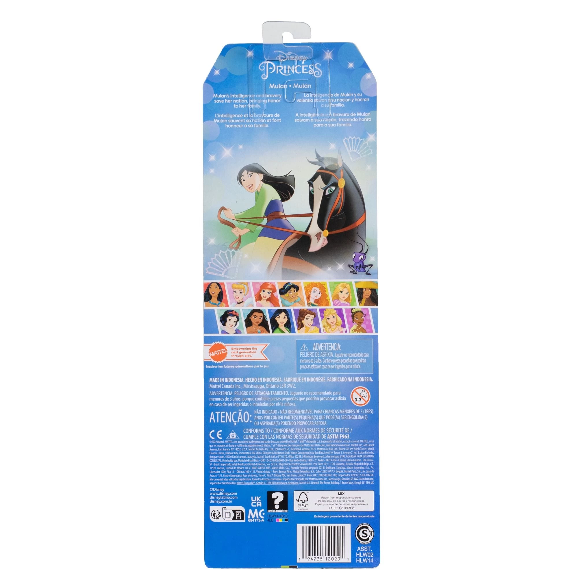 Meet this Mulan doll, inspired by the courageous and strong-willed princess from the classic Disney movie. This posable fashion doll is shown in a sparkling outfit and accessories that include shoes and a tiara. In her signature look from the movie, this Mulan doll is ready for any adventure! Doll cannot stand alone. Colors and decorations may vary.