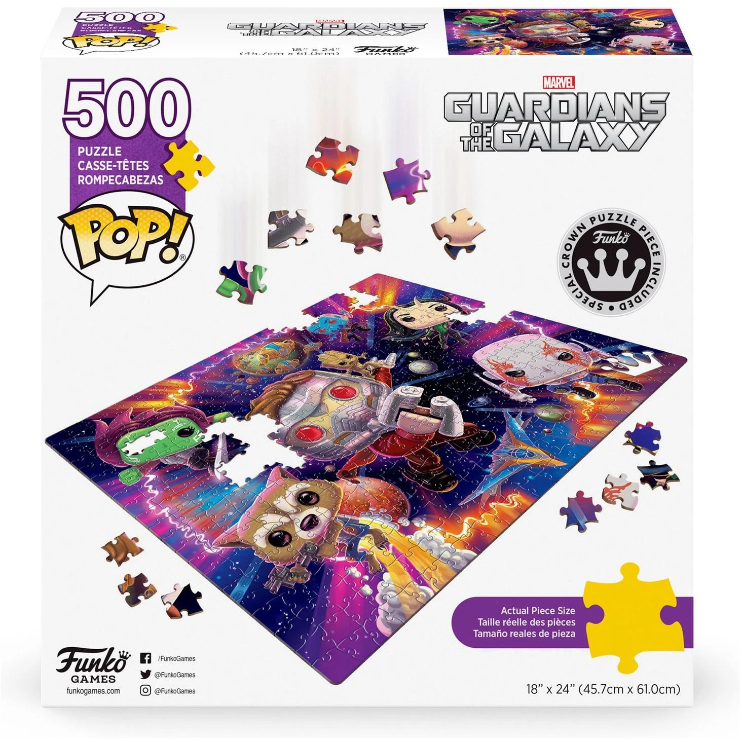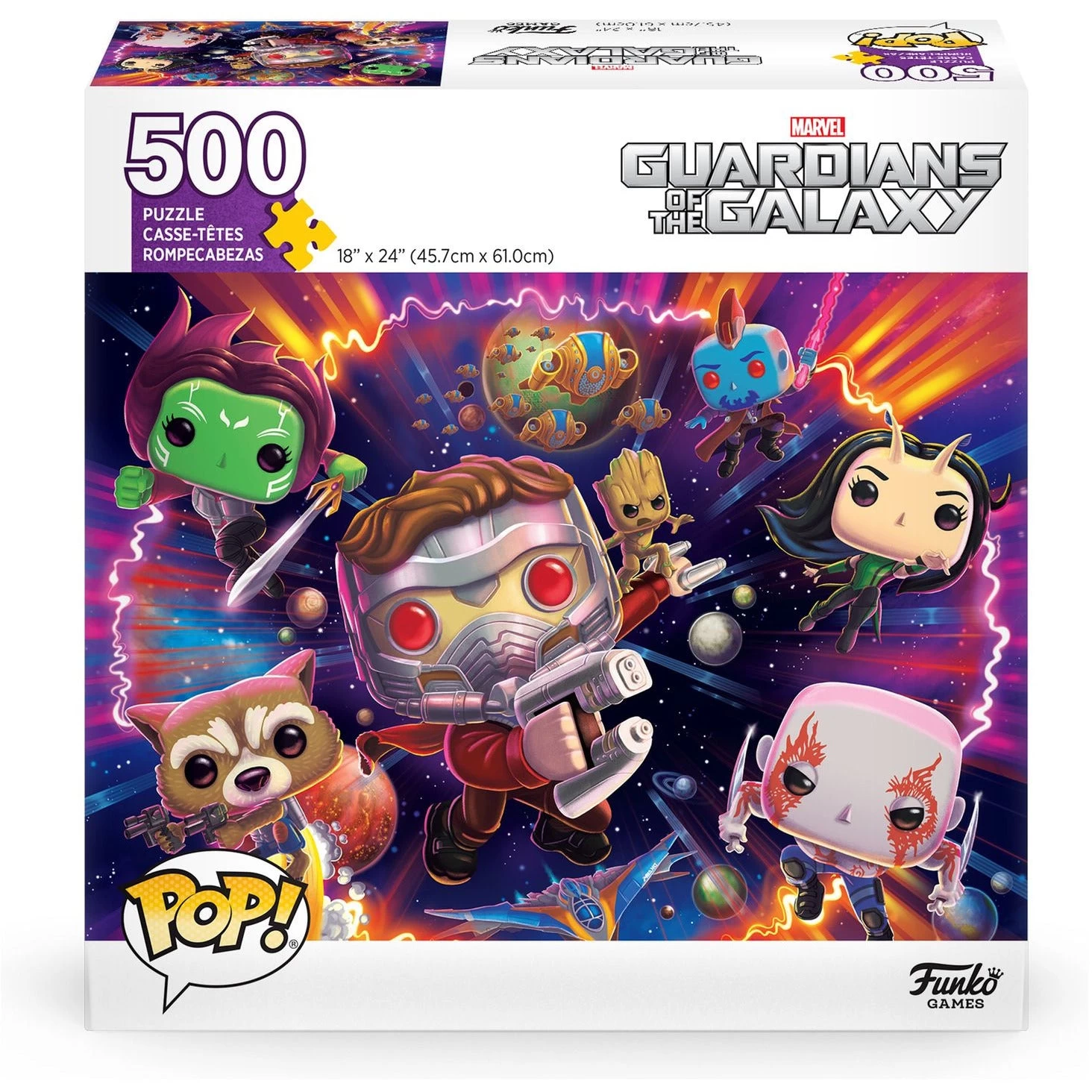 Watch your favorite pop culture characters take shape as you put together 500 pieces of fun! This 18” x 24” puzzle uses high-quality materials and vibrant Pop! styled artwork. It’s perfect puzzling for the whole family, featuring an original illustration inspired by the hit film Guardians of the Galaxy.Â
