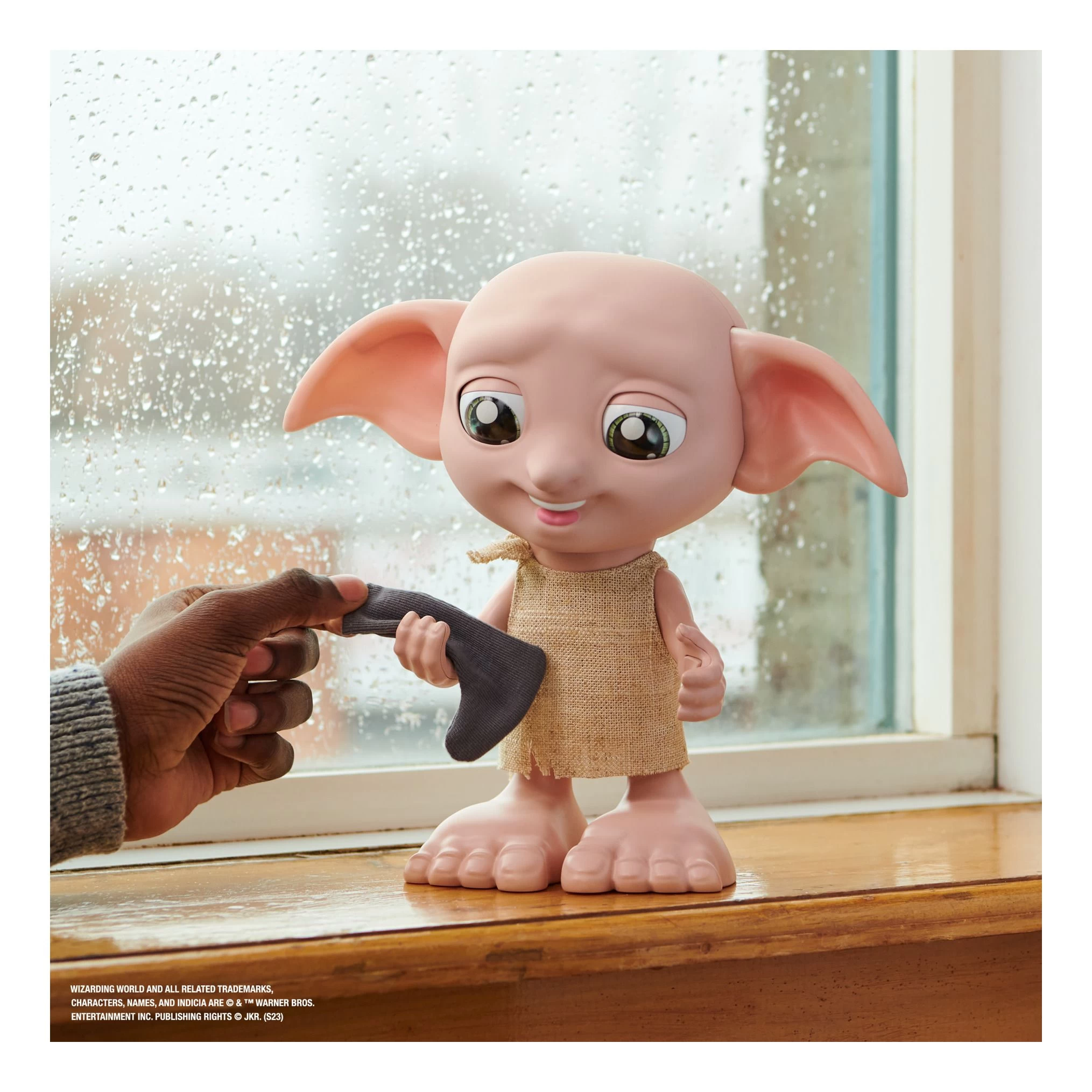 Wizarding World adventures await with interactive Magical Dobby. Young witches, wizards and Muggles can relive the magic of Harry Potter with their favourite house-elf, Dobby. This enchanting 21.6-cm interactive Dobby figure comes to life with over 30 sounds and phrases, and animated movement of his eyes, ears, head and arms. Magical Dobby responds to touch with his sounds and movements. Squeeze his hand to hear phrases from the movies, and as he interacts with you, he’ll move his ears, blink and move his eyes, lift his arms and move his head. For even more magical reactions, present Dobby with his favourite piece of clothing. Place the included sock in his hand to trigger even more exciting sounds and phrases. With his authentic details, movements, sounds and phrases, Magical Dobby will inspire your imagination through interactive pretend play. Wizarding World Harry Potter toys are must-have gifts for kids and fans who enjoy collectibles, interactive toys, wands, action figures, dolls and doll accessories. They’re perfect for display and make great birthday gifts, special occasion gifts or stocking fillers. Magical Dobby comes with 4 AAA batteries and speaks English or French. Expand your Wizarding World collection with interactive Magical Dobby.