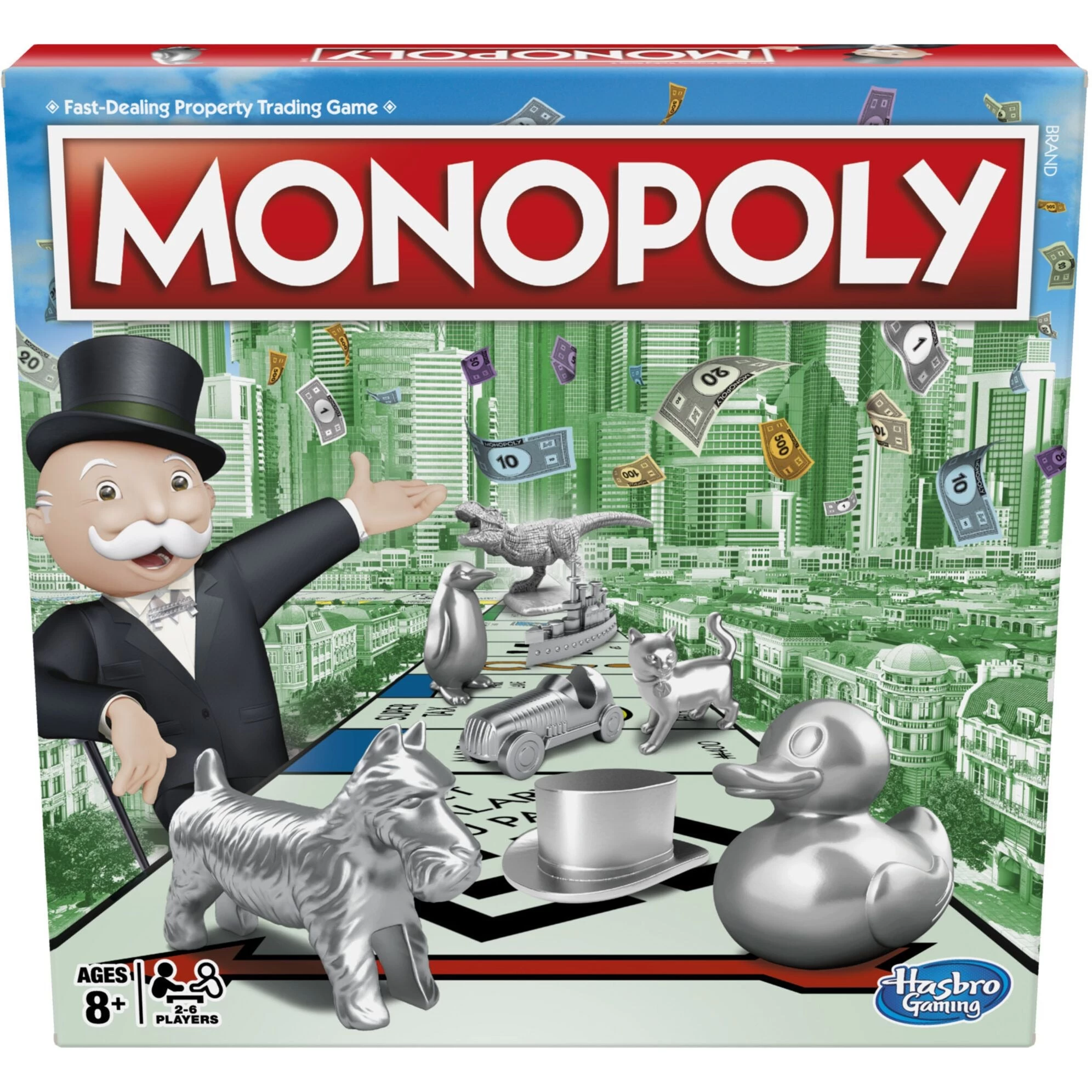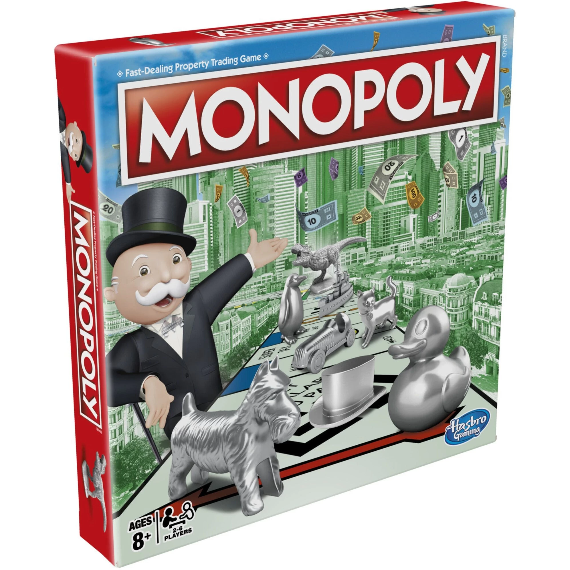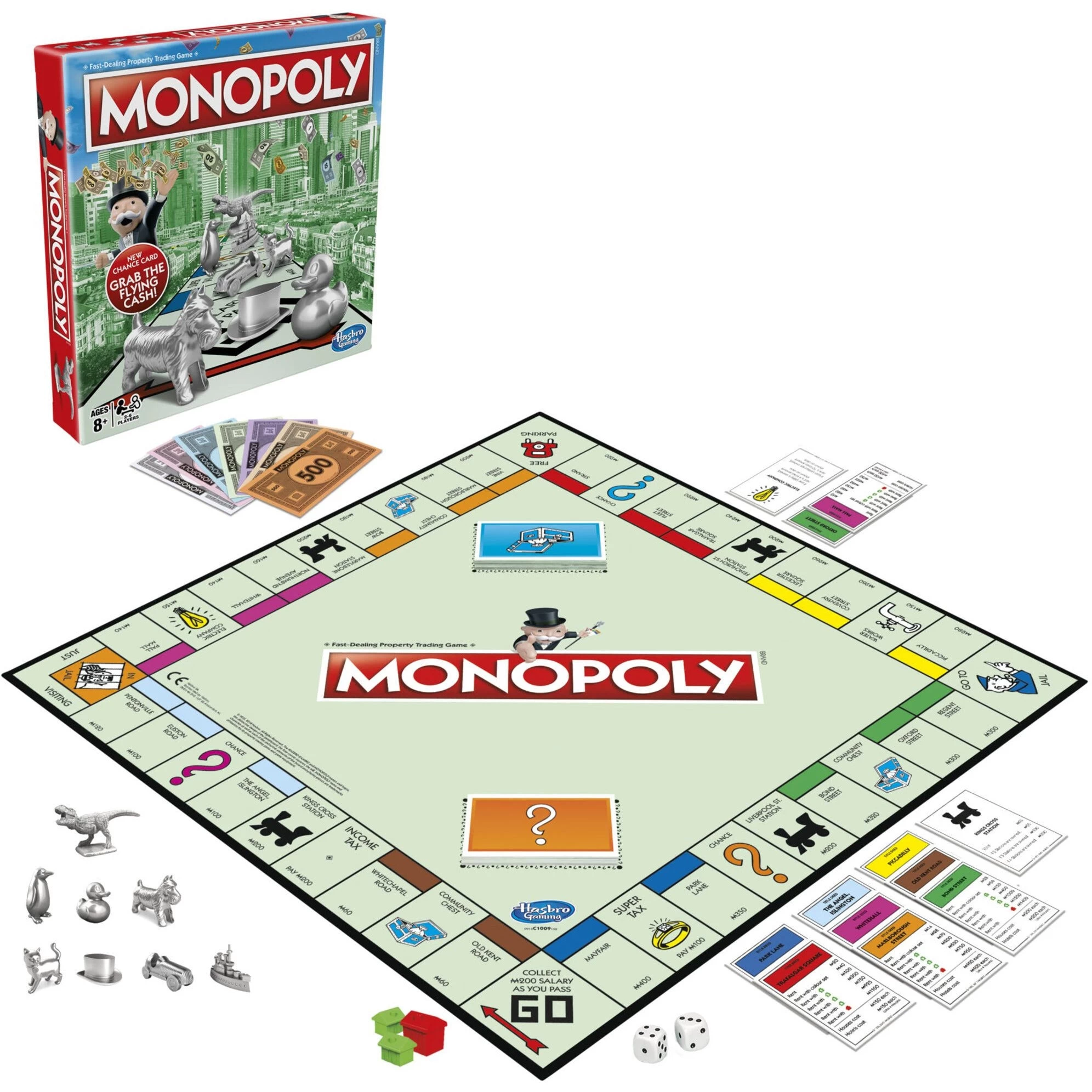 The thrill of bankrupting an opponent, but it pays to play nice, because fortunes could change with the roll of the dice. Experience the ups and downs by collecting property colours sets to build houses, and maybe even upgrading to a hotel! The more properties each player owns, the more rent can be charged. Chance cards could be worth money, or one might just say Go To Jail! The Hasbro Gaming and Monopoly names and logos, the distinctive design of the gameboard, the four corner squares, the Mr. Monopoly name and character, as well as each of the distinctive elements of the board and playing pieces are trademarks of Hasbro.