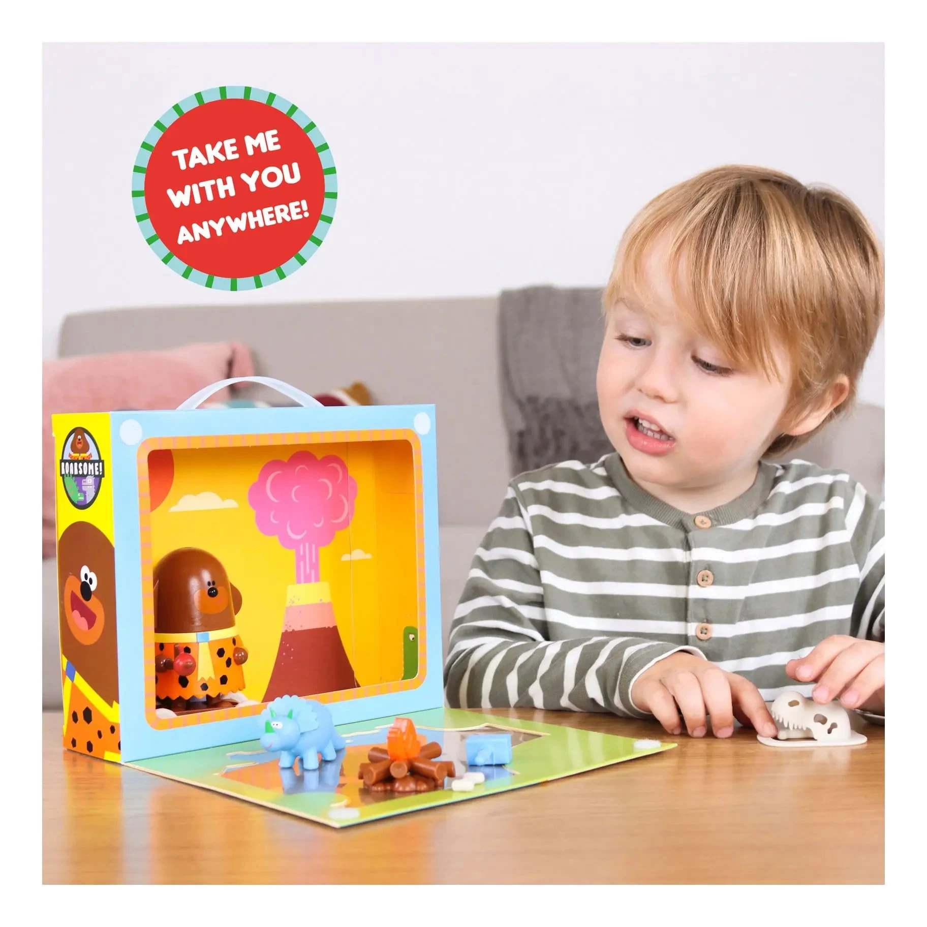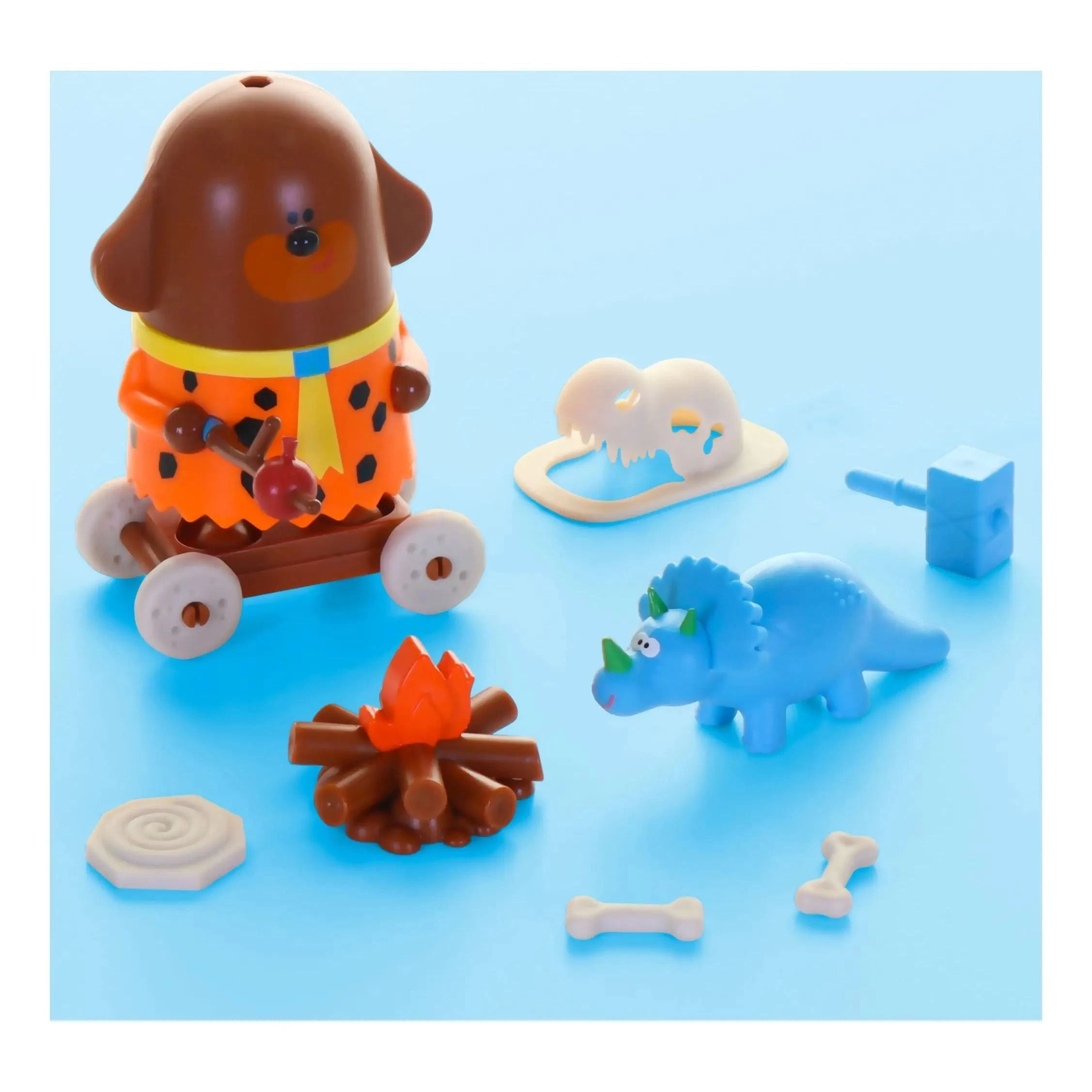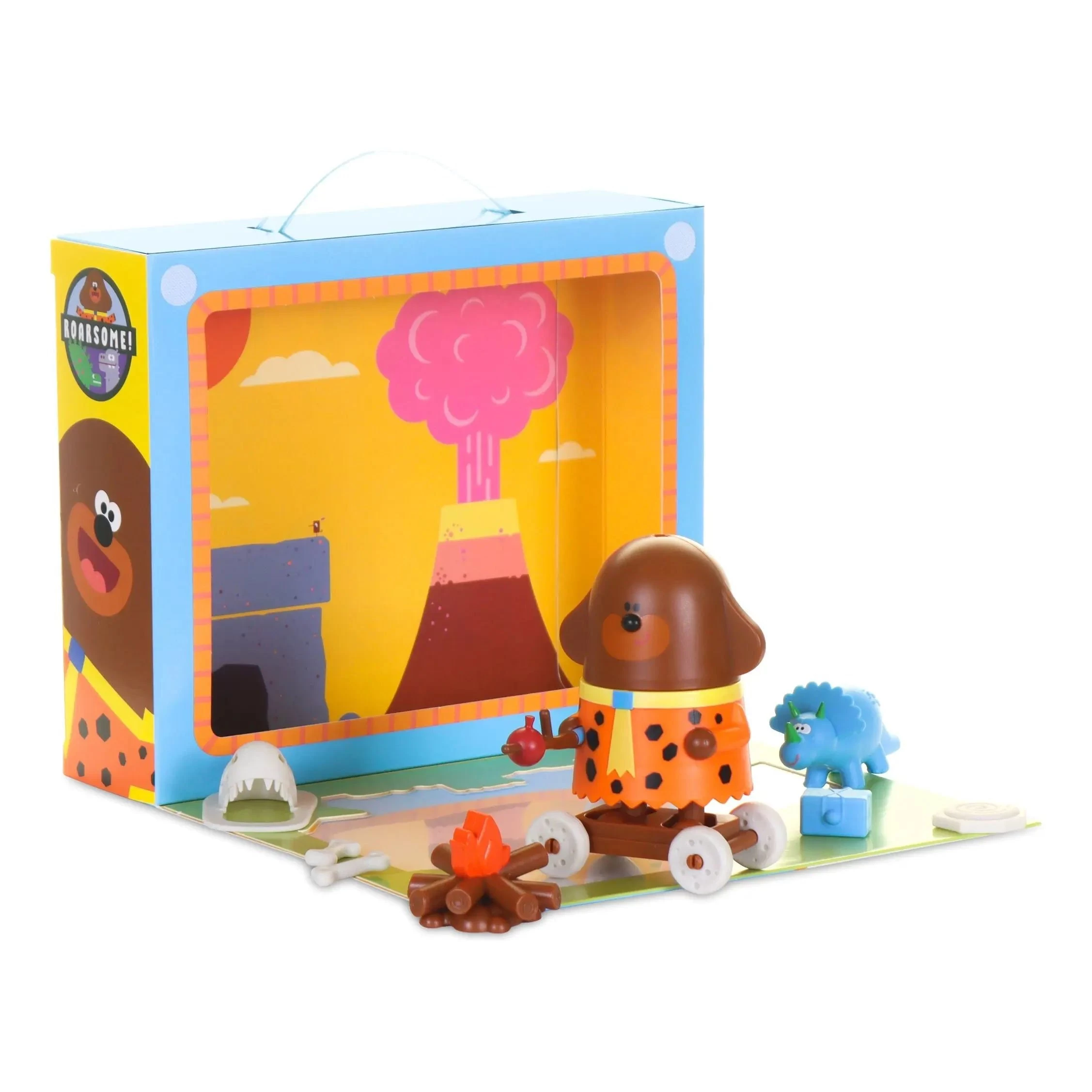 Figures, surprises and more – with accessories galore! The Dinosaurs with Duggee Take and Play Set reveals 2 exclusive figures, 8 accessories and a box that transforms into a playset of Duggee’s prehistoric world!