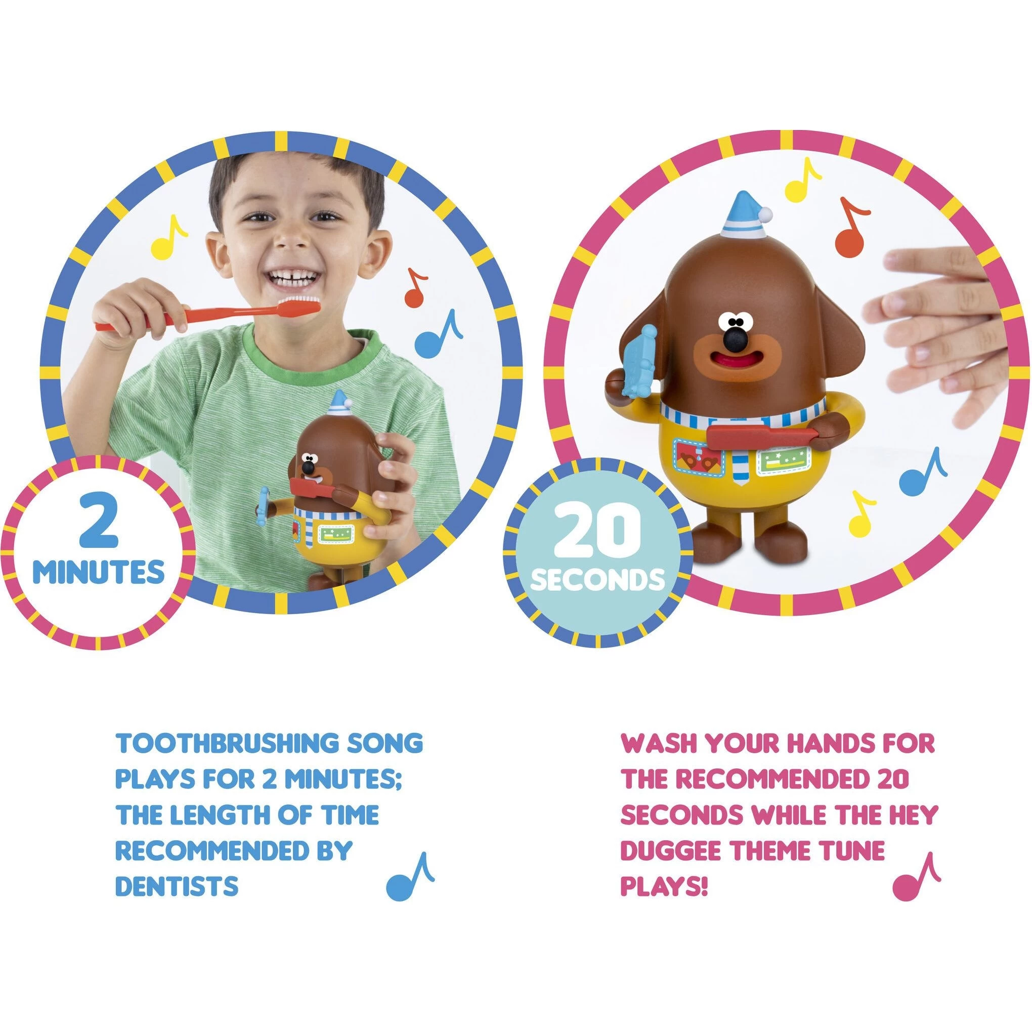 • FEATURES THE HEY DUGGEE TOOTH BRUSHING SONG: Lift the toothbrush to Duggee’s mouth & the toothbrushing song will start.