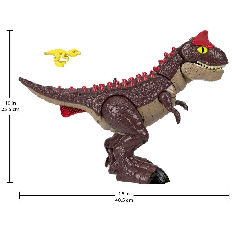 Preschool kids can relive the thrilling action of the Jurassic World franchise, and create their own action-packed stories, with this Imaginext Jurassic World Spike Strike Carnotaurus dinosaur toy from Fisher-Price. This ferocious 11-inch tall dinosaur has an impressive defense mode: when kids press the Power Pad, the dinosaur lunges down and releases her spikes to protect against attackers! Kids will love seeing the Carnotaurus throw off the baby Raptor again and again as they act out fun dinosaur battles.