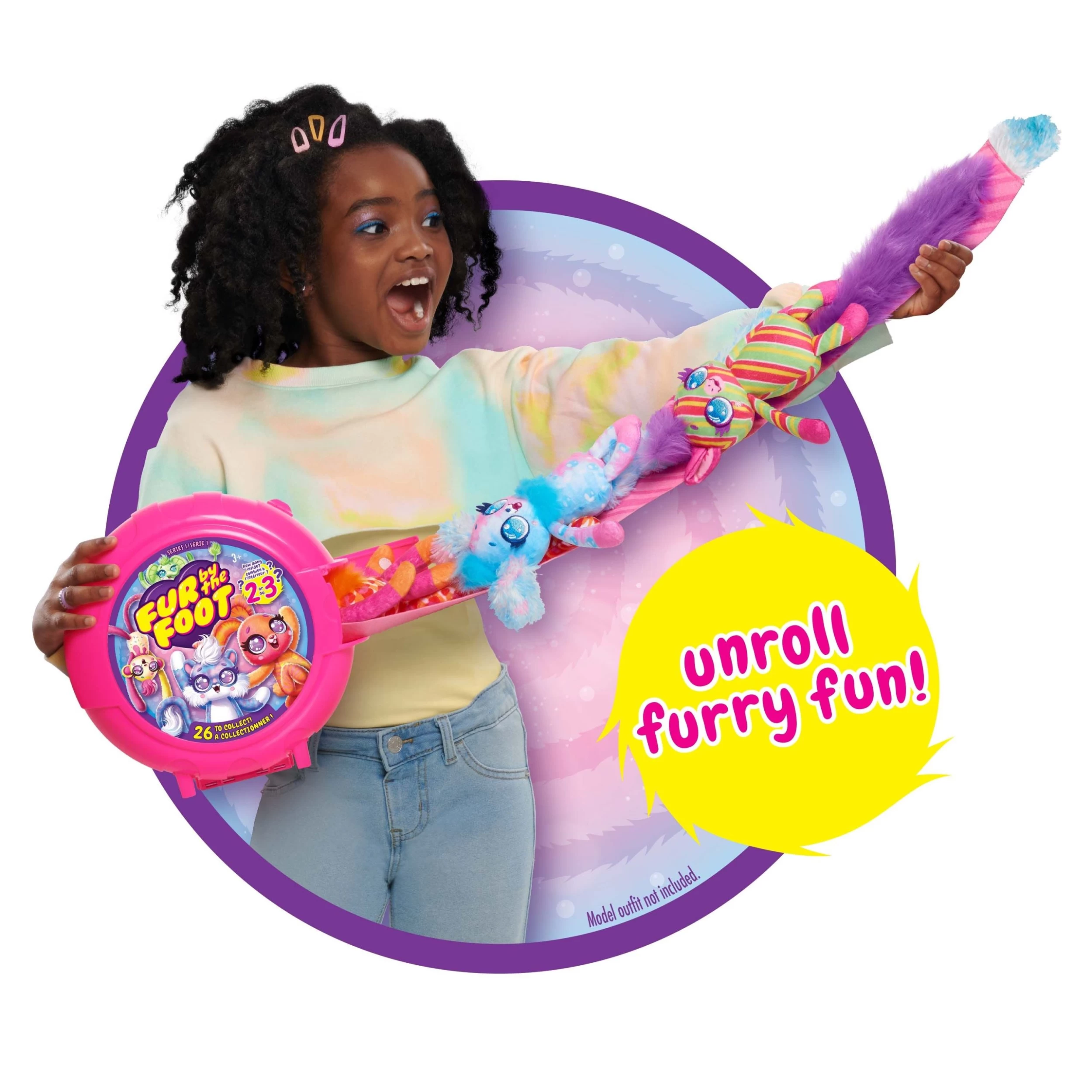• Blind Capsule Fun: Discover a mystery rolled up inside a 10-inch dispenser with Fur by the Foot Bubblegum Besties.