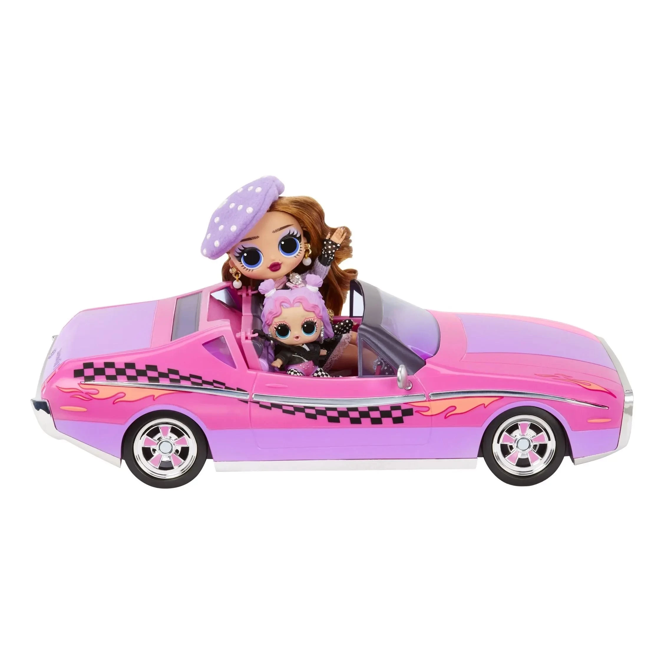 Meet up with your BFFs and drive in-style with the all-new L.O.L. Surprise City Cruiser including an exclusive L.O.L. Surprise doll Beeps, who comes with her own adorable fashions and accessories. This pink and purple 2-seater sports car has a trendy retro finish including black and white checkers and stylish flares, capturing everyone’s attention on the road.