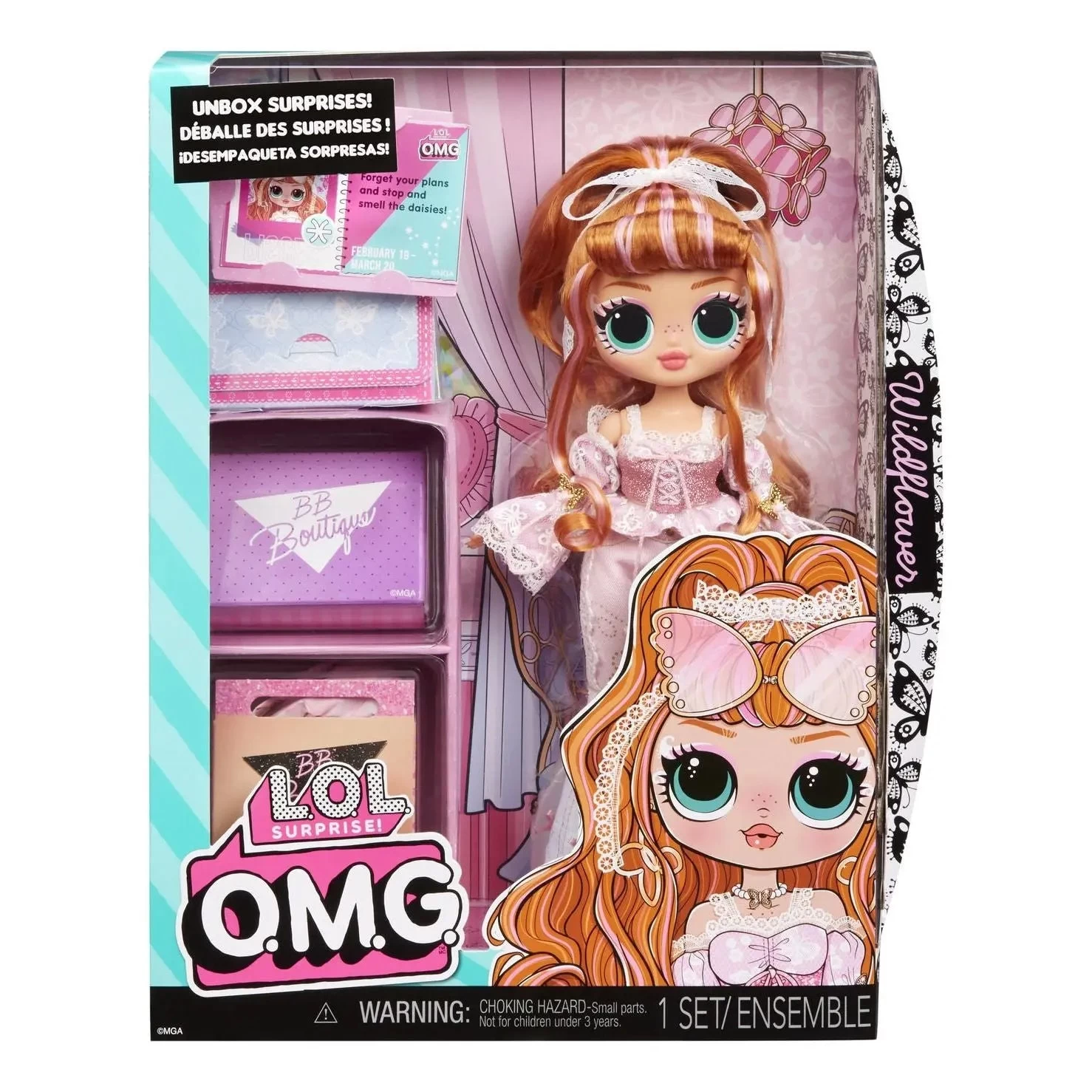 Introducing the all-new L.O.L. Surprise! O.M.G. fashion doll Wildflower with multiple surprises! Wildflower never fails to express her love for butterflies, flowers, and the colour pink, especially through her fashions and accessories. She has stunning features, beautiful hair, her own pastel-toned floral outfit, and comes articulated for tons of posing opportunities.