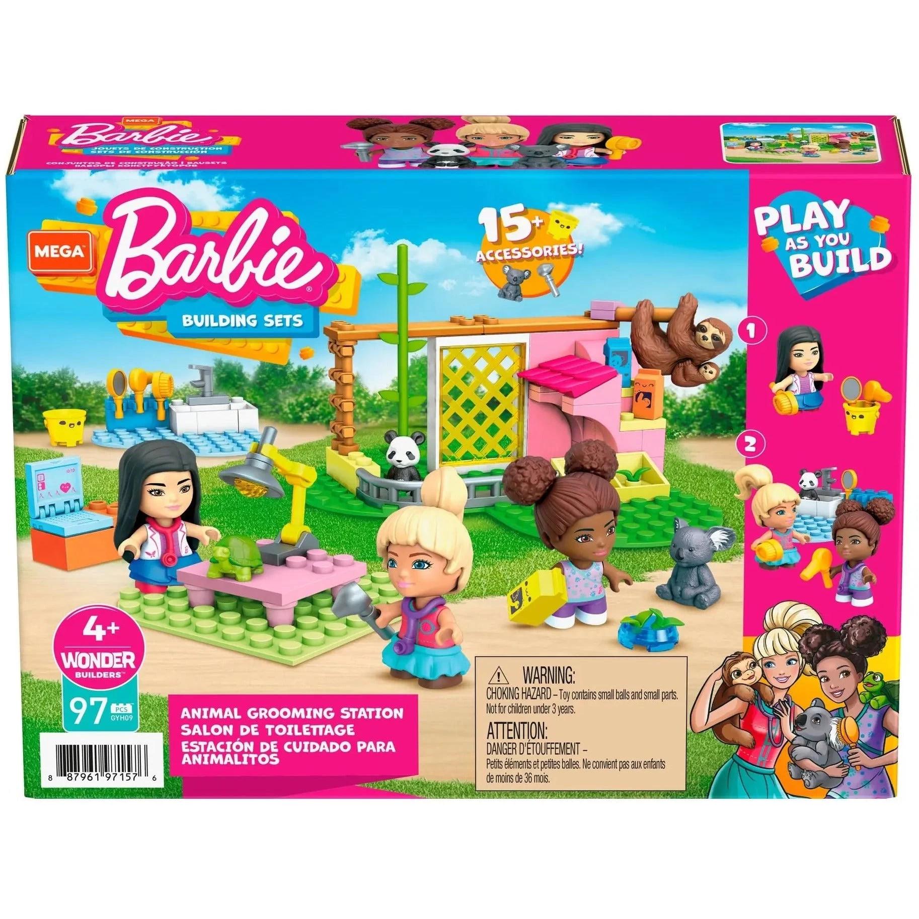You can be anything when you help 3 Barbie micro-dolls at the Animal Grooming Station. Discover the nurturing world of animal care and play as you build the grooming, feeding and examination stations equipped with roleplay accessories like a brush, water bowl, stethoscopes and more. Working at the Animal Grooming Station is fun when you play with adorable animals like a panda, turtle, koala, sloth and baby sloth. Designed for beginners, this building set is easy to build and offers storytelling play with every step of building. Ideal for Wonder Builders, ages 4 and up