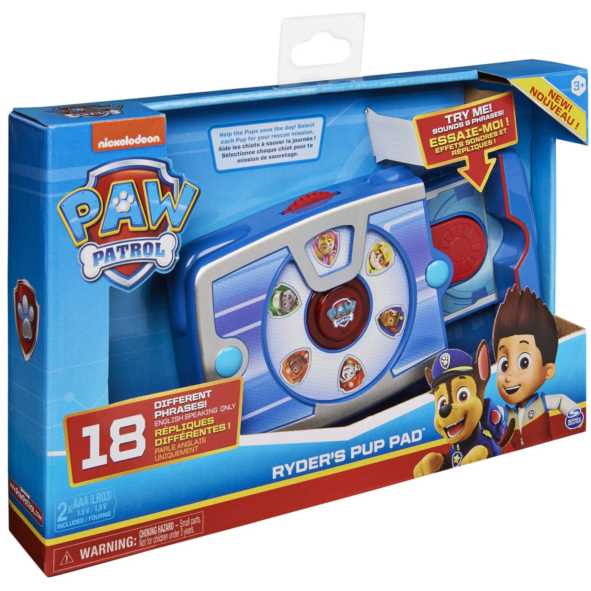 Help the PAW Patrol pups save the day with Ryder’s Pup Pad! Featuring 18 different sounds and phrases, Ryder’s Pup Pad brings the excitement of PAW Patrol to life. Just like in the show, you can use Ryder’s Pup Pad to contact the PAW Patrol when trouble strikes! Turn the dial on the top to choose from Chase, Marshall, Rubble, Skye, Rocky or Zuma. When you select a pup, the center lights up and you’ll hear unique phrases and sounds straight from the show! To start your mission, pull the side out, turn the dial and press the red button to race to the ruff ruff rescue. Equipped with the Pup Pad, you’ll be rescue ready, just like Ryder! For even more PAW Patrol action, look for the Chase and Marshall Be the Hero sets (each sold separately) for complete PAW Patrol role-play fun! Feel just like Ryder when you lead the PAW Patrol with Ryder’s Pup Pad!