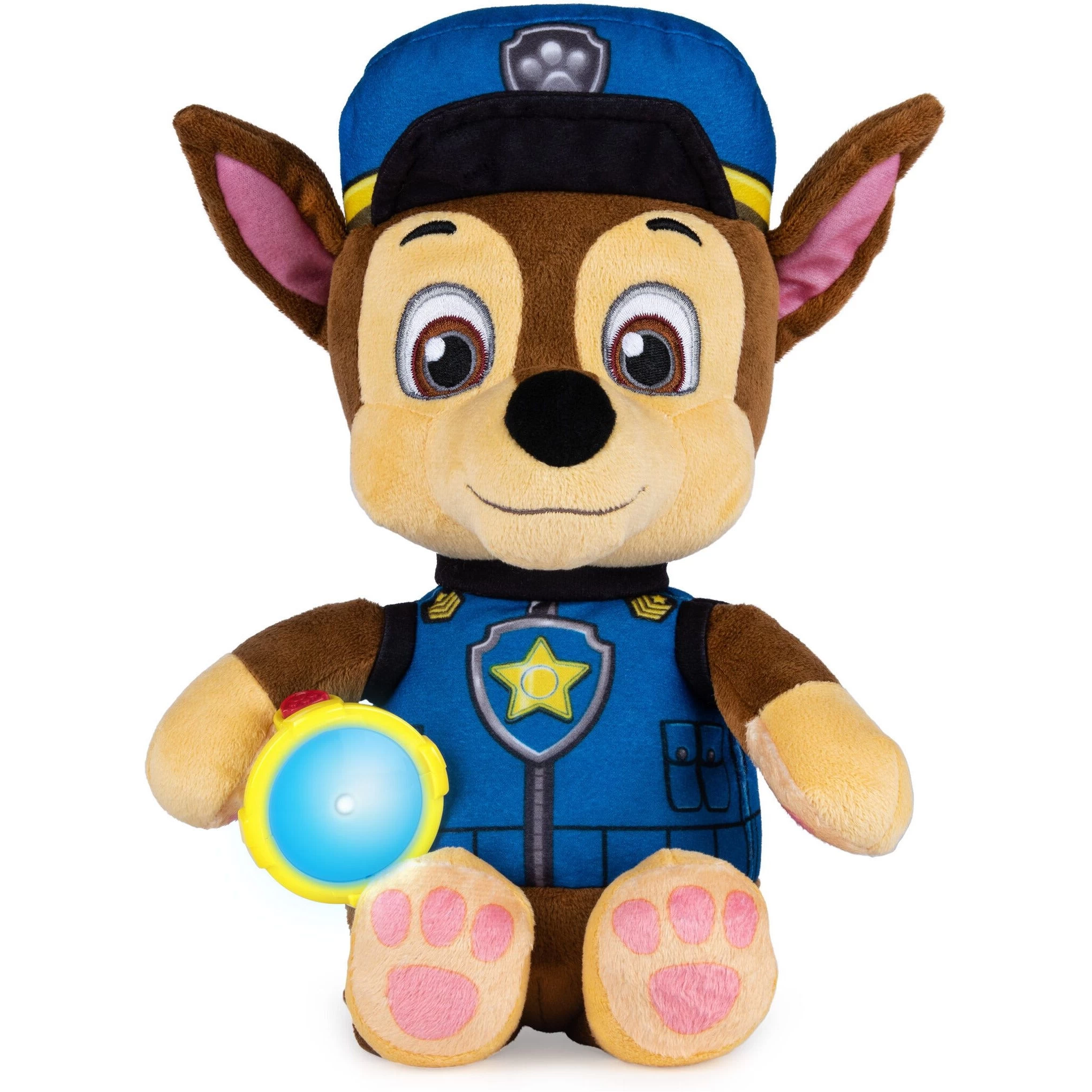 PAW Patrol Snuggle Up Chase! Made of super soft materials, this cuddly plush pup will be your child’s favourite part of bedtime and playtime. Holding a torch that really lights up, Chase can help to light the way for night-time rescues! To activate the lights, simply push the button on the torch for Chase’s blue lights and sounds! Snuggle Up Chase knows over 10 sounds and lullabies, and even sings PAW Patrol bedtime songs. Your child will have nothing but sweet dreams with their new best friend, PAW Patrol Snuggle Up Chase Plush!