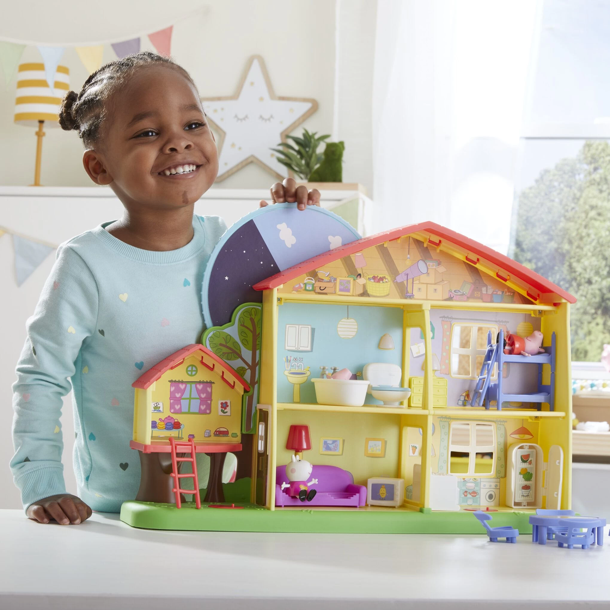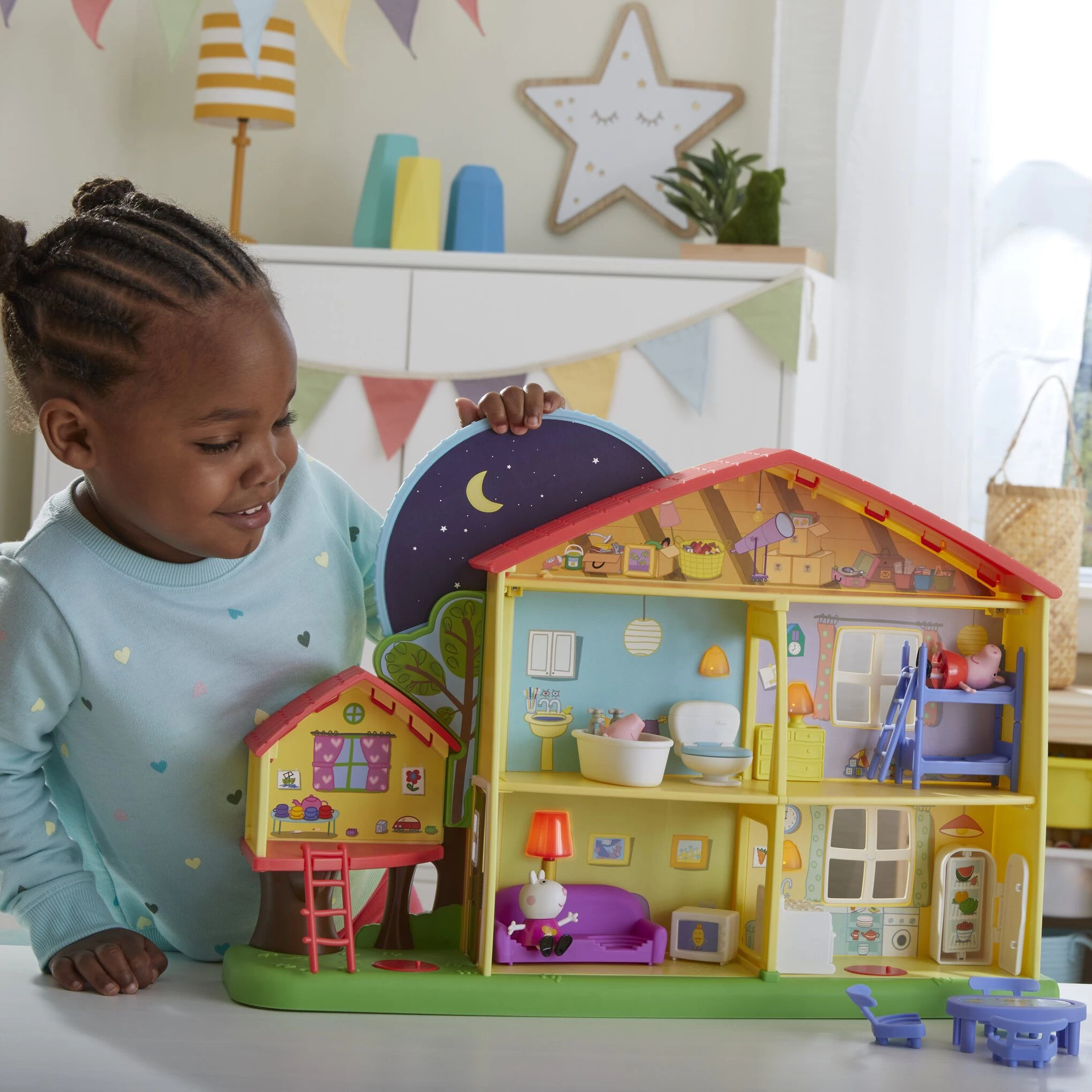 • 3 FIGURES AND 13 ACCESSORIES: Playset comes with 3 figures – Peppa Pig, George Pig, and Suzy Sheep – and 13 fun accessories, including a toilet, TV, and fridge. And outside? A cozy treehouse