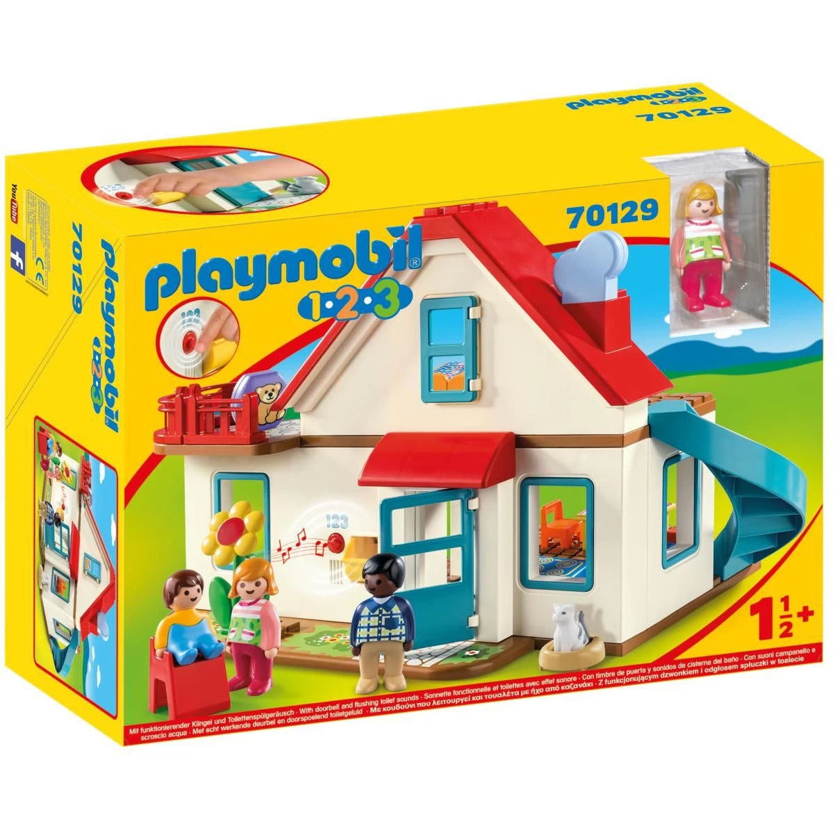 Helping little ones learn abour the world around them, the Playmobil 70129 1.2.3 Family Home playset features a house with a working doorbell for realistic play. The Family Home also featuring opening doors. There is an external staircase which leads to the top floor, where accessories can be stored. The playset comes complete with 3 Playmobil figures, furniture and accessories. The large, colouful 1.2.3 pieces are ideal for small hands.