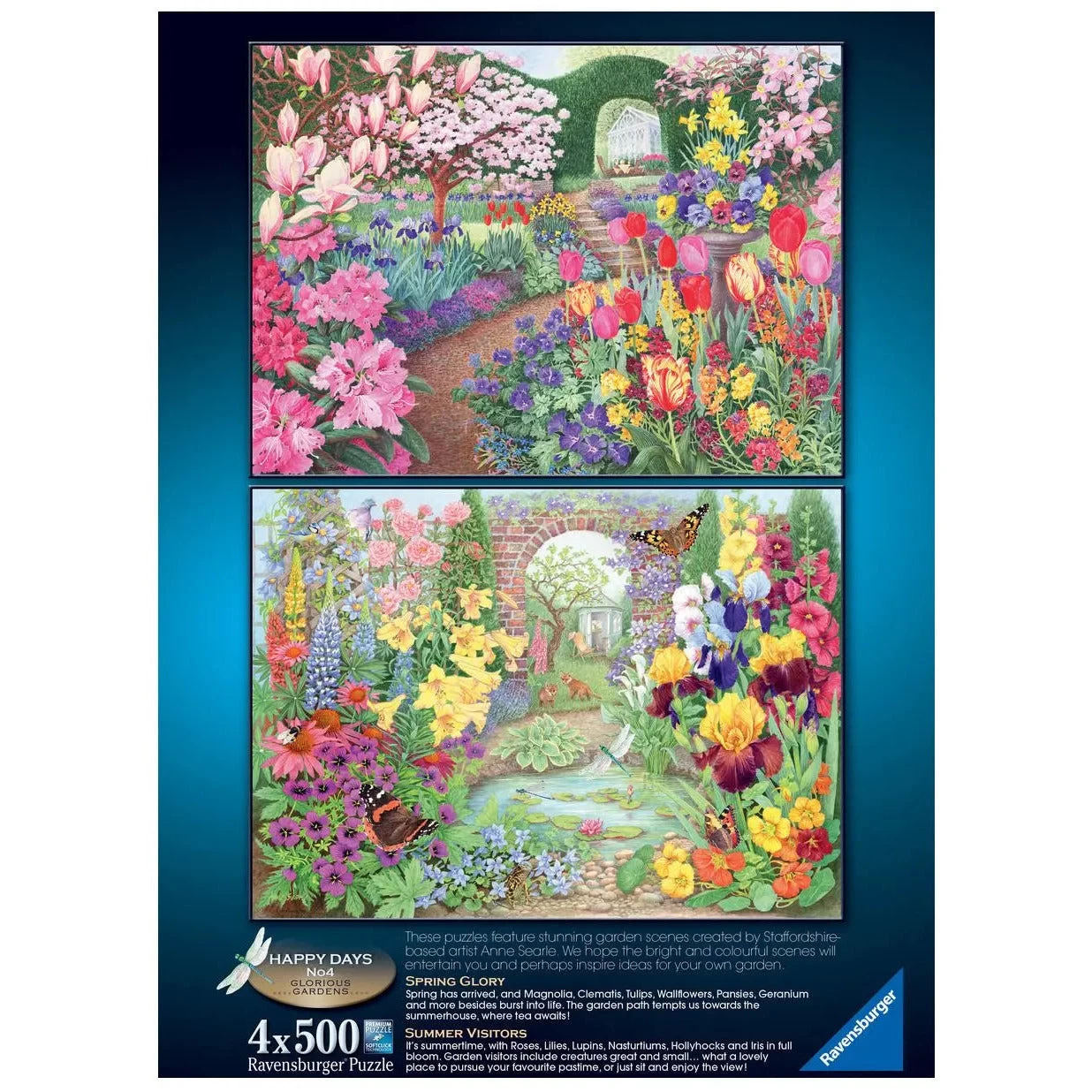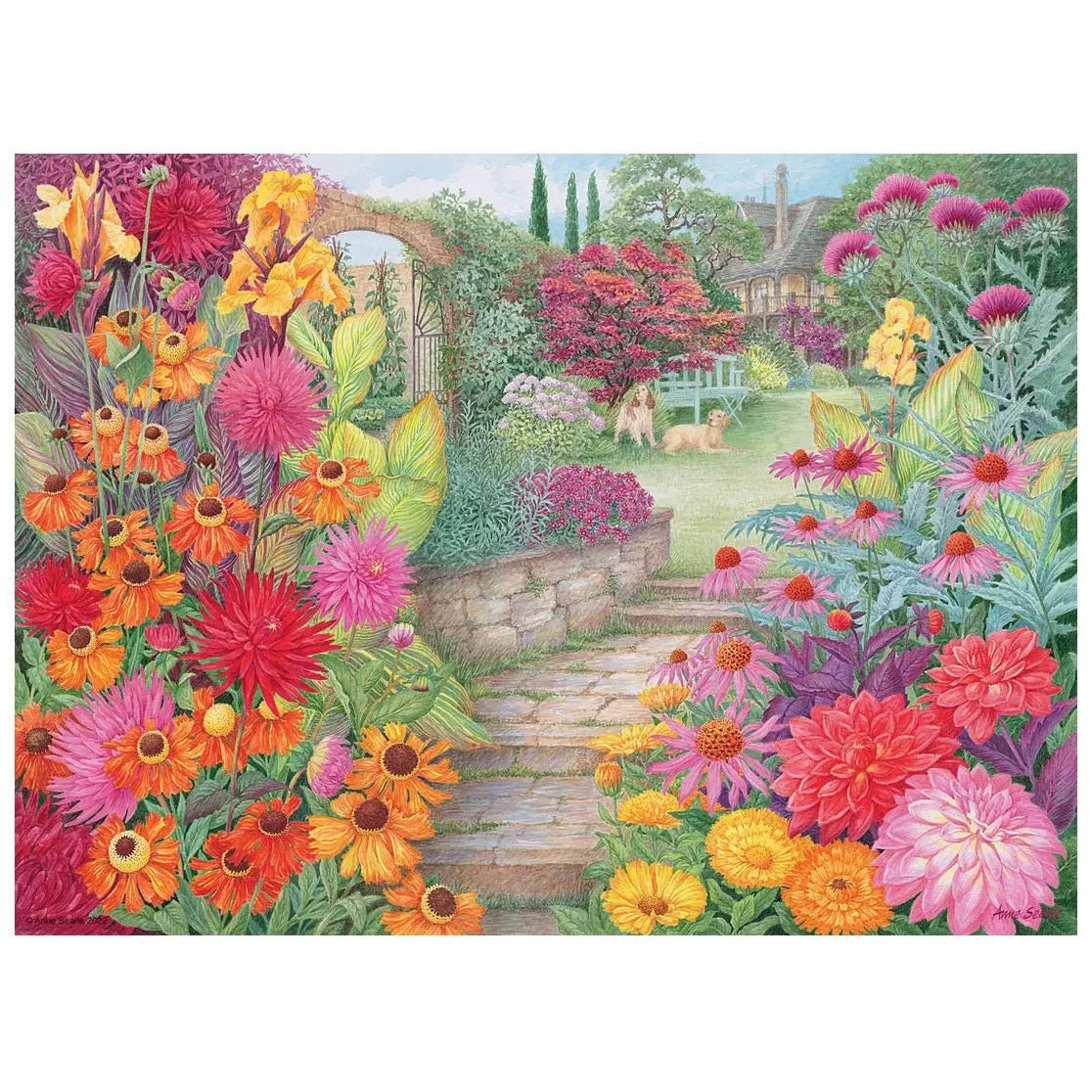 What’s your favourite season of the year? Each of these aptly-named puzzles show that gardens can look fabulous, regardless of the time of the year. Spring Glory shows a blaze of colour from Clematis, Tulips, Magnolia, Wallflowers, Pansies and Geraniums, also offering us a tempting view of a pretty summerhouse. Summer Visitors reveals an artist’s garden studio, set in a garden of Roses, Lilies, Lupins, Nasturtiums, Hollyhocks and Iris. In Autumn Glow a Labrador and spaniel play amongst the rich warm tones of Dahlias, Cannas, Echinacea and Helenium. And lastly Winter’s End shows a cosy sitting place surrounded with Hellebores, Crocuses, Cyclamen, Dwarf Irises, Primulas, Jasmine and Japanese Quince. Product designed and developed in the UK.
