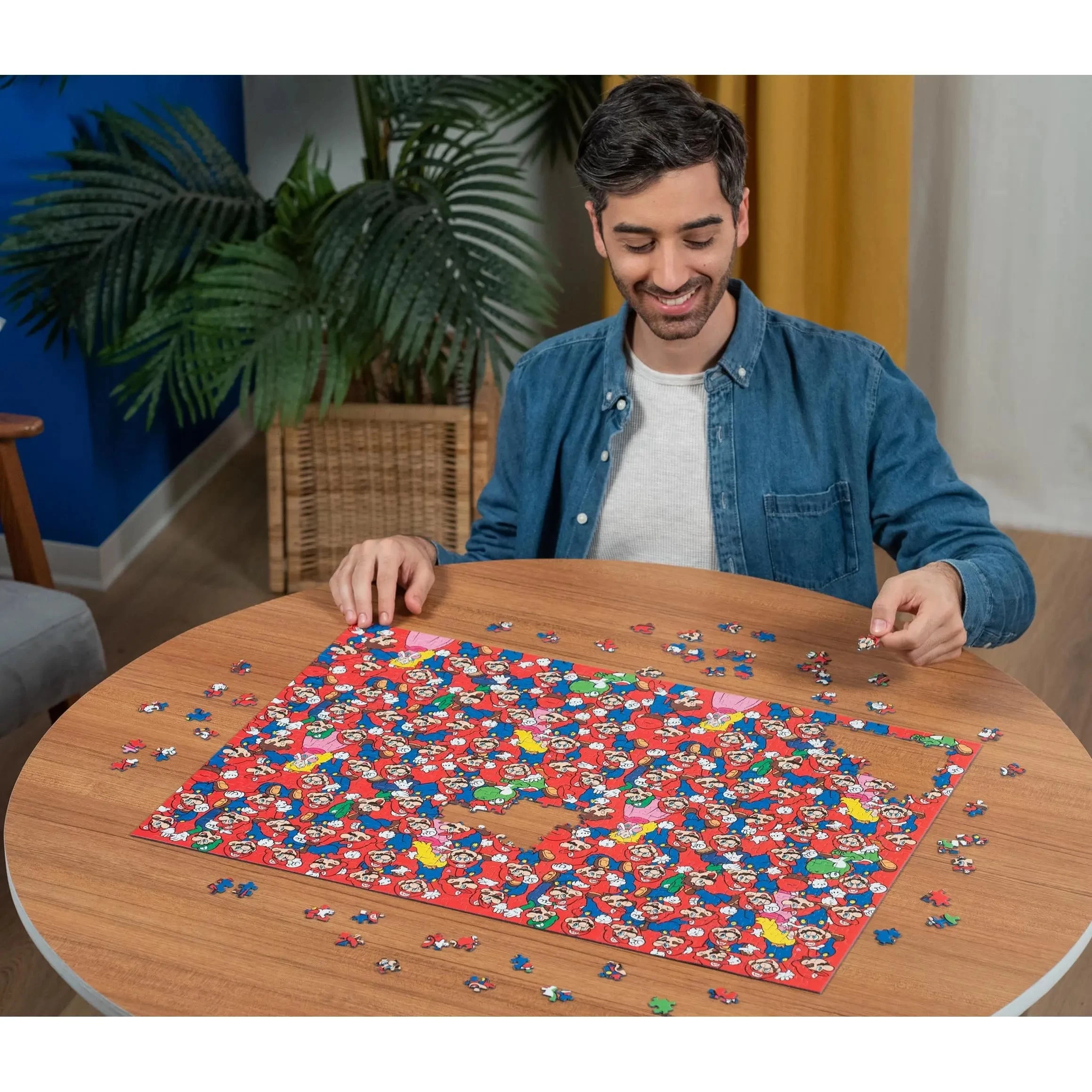 • Mario, Princess Peach and Yoshi star on this iconic and nostalgic design. The pink of Princess Peach’s dress will help you to assemble the design, as will bright green Yoshi, but you’ll need sharp eyes to spot the different images of Mario. The red background adds a little spice to the challenge! A perfect Super Mario gift