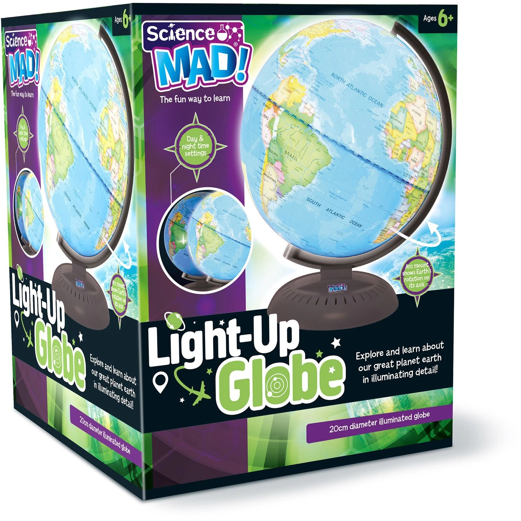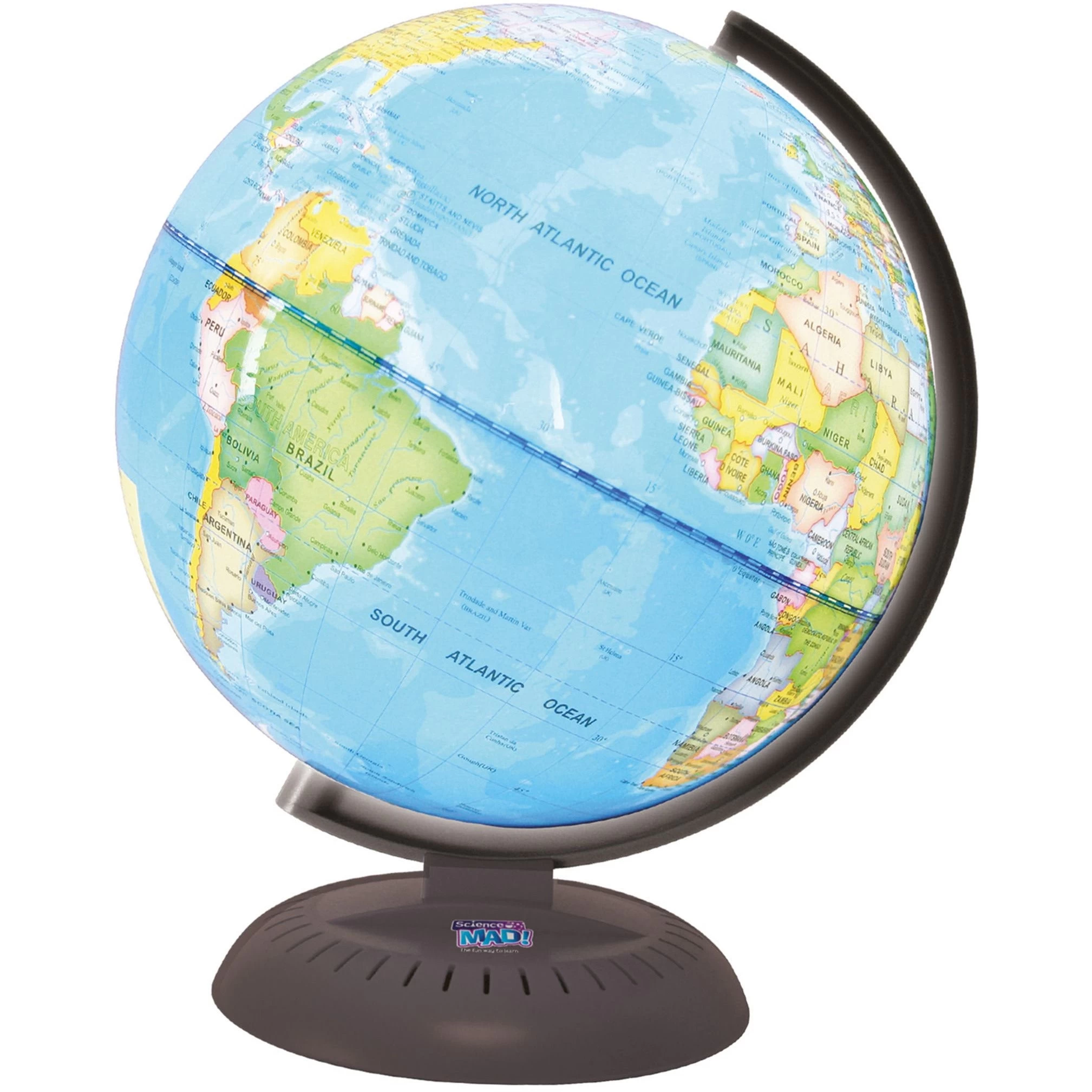 And you’re offexploring the world! The planet earth really is astonishing. It’s difficult to imagine the vast distances between neighbouring continents, the wide oceans and seas that cover over 70% of its surface, and the near 200 countries that exist around the world. This 20cm diameter globe is a miniature model of our huge planet at your finger-tips, giving you access to continents, oceans, countries and major cities. It’s a useful introduction to the fascinating science of geography, as well as being a convenient desktop reference.