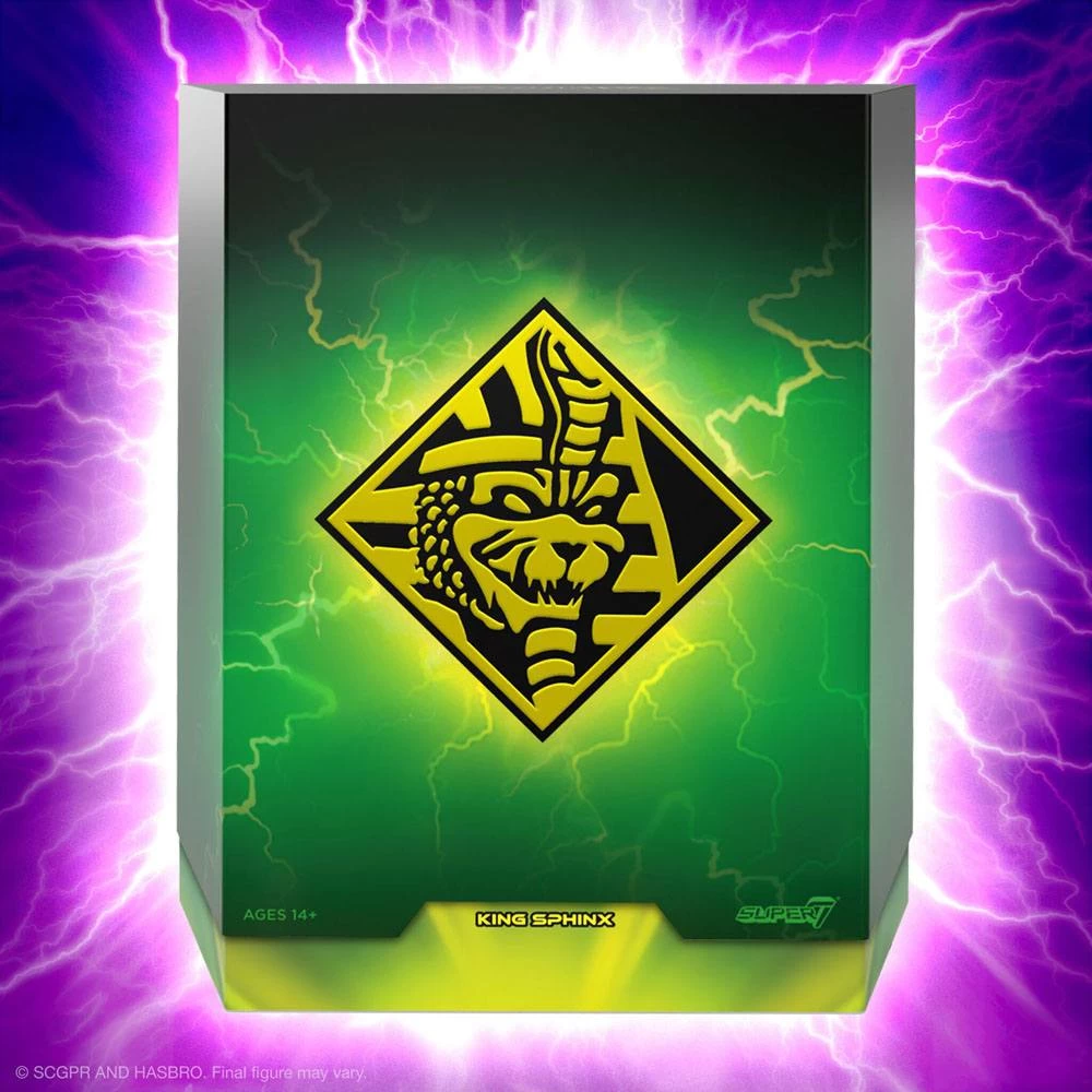 The Egyptian-inspired monster King Sphinx is one of the most dangerous foes ever to cross paths with the Mighty Morphin Power Rangers! This 8″ fully articulated Mighty Morphin Power Rangers ULTIMATES! King Sphinx figure features premium paint deco and highly detailed sculpting, and comes with interchangeable heads and hands, and his Sphinx Scepter accessory. King Sphinx’ opponents are blown away (literally) by the mighty wind blast from his wings, and your friends & family will be blown away (figuratively) when they see you’ve added the King Sphinx ULTIMATES! figure to your collection!