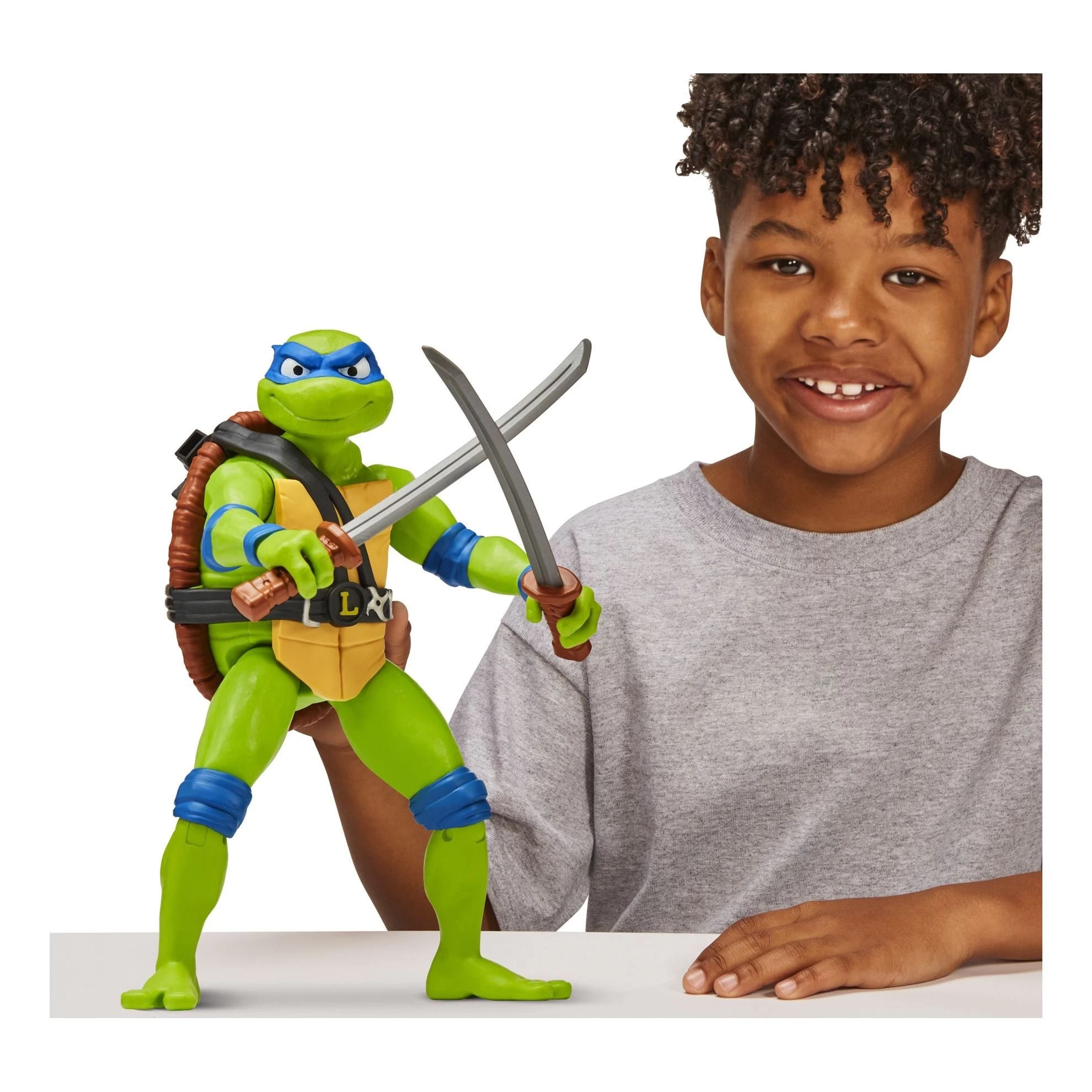 Leonardo is the Turtles’ leader in blue, and now he’s a wannabe student in high school! As Leo and his brothers start to leave the nest—er, the sewer—he’s set on transforming them into a crime-fighting team that he can lead to victory. With some help from their rat-dad Splinter, the Teenage Mutant Ninja Turtles will be undefeetable! (Foot pun intended). Leo stands 12-Inches tall and is highly detailed with individual sculpting and decoration to match his movie character. Leo has 7 points of articulation for great, action-packed battle poses. Leo comes ready for battle with his iconic twin katanas.