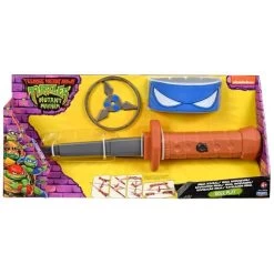 Be a leader and transform yourself into Leonardo from the hit Teenage Mutant Ninja Turtles Mutant Mayhem movie with Leonardo’s Ninja Reveal Role Play set! Tie on Leo’s royal bandana, grab his powerful Ninja Reveal Katana and throwing star and, in an instant, you’ve transformed yourself into Leonardo! When the baddies attack, unleash the power of your katana with the press of a button and a flick of the wrist to reveal the sharp katana blade. When the battle’s won, simply slide the blade back into the handle and you’re ready for the next fight!