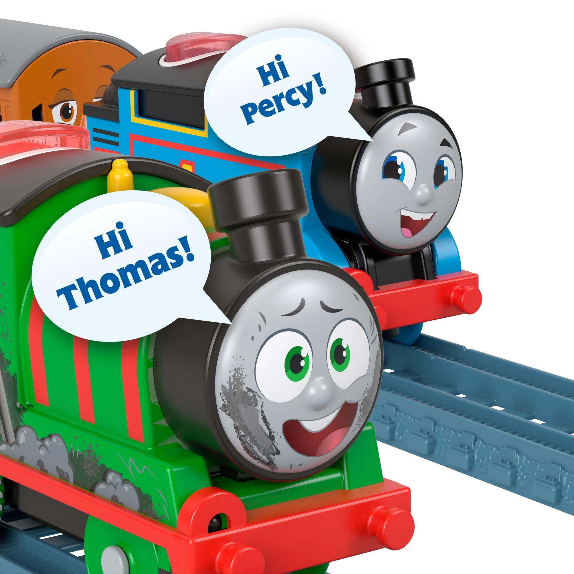 • When Percy meets any of the other talking engines, the engines will recognize and talk to each other! (Each sold separately and subject to availability.)
