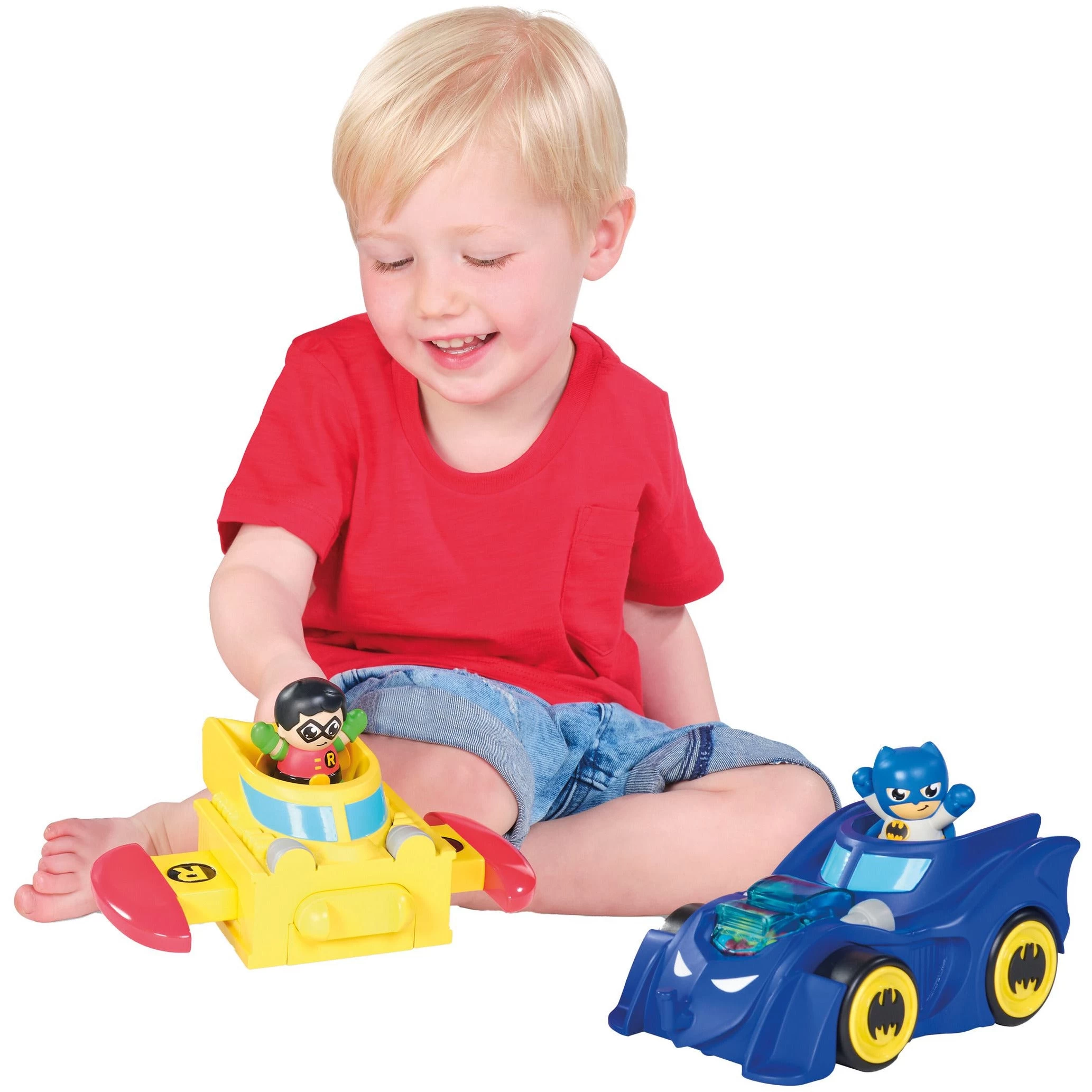 • BATMAN & ROBIN: The Caped Crusader and his sidekick fit neatly into each vehicle for shape-sorting and swapping fun