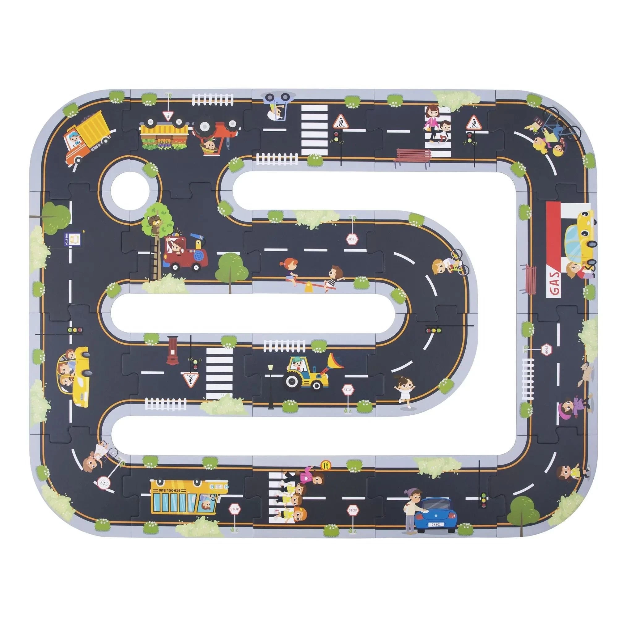 This city road is easy to put together as the road fits together like a jigsaw puzzle.