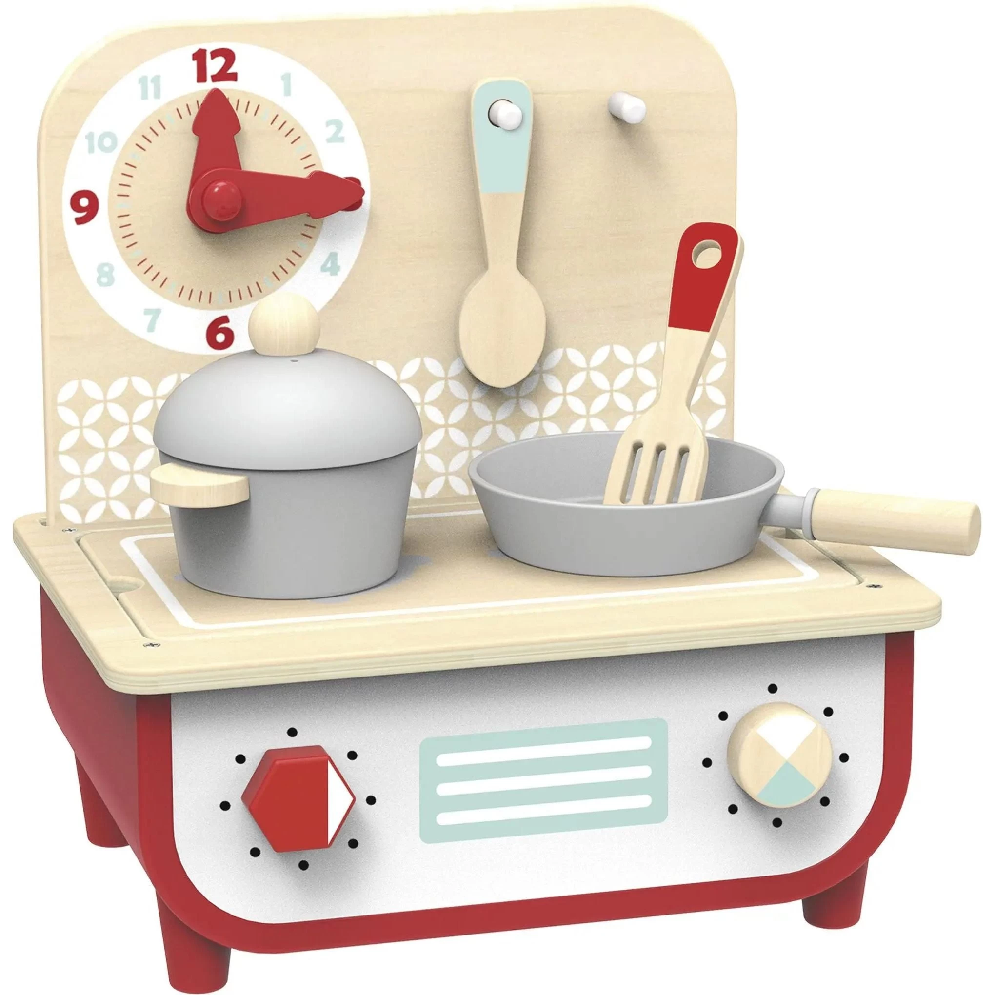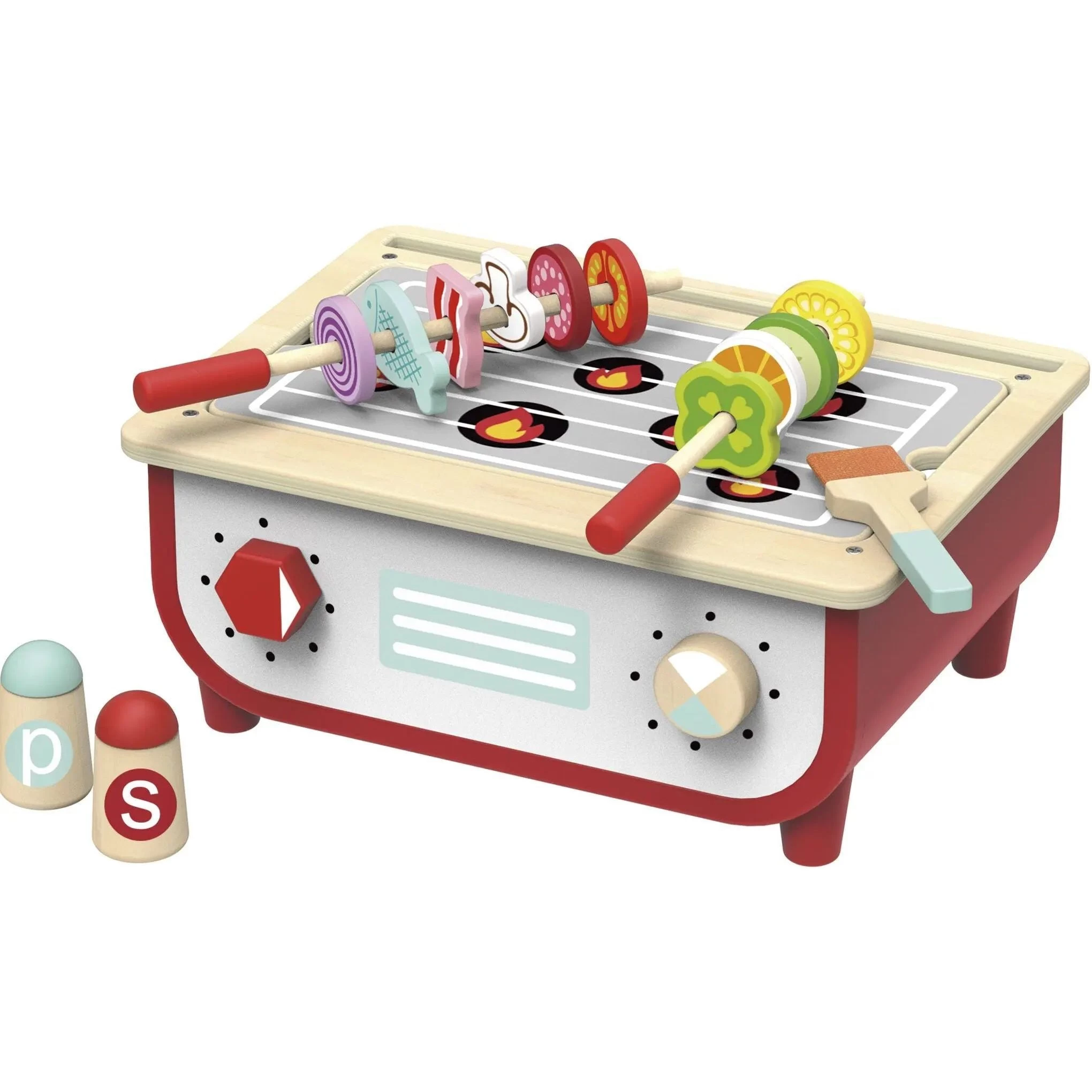 Tooky Toy’s beautifully crafted wooden kitchen & BBQ is perfect for any child who loves to role play. When it’s cold and raining play inside with it as a kitchen – with a backboard showing a clock and hooks for utensils. When the sun is shining take it outside, remove the backboard and flip the stove over to start BBQ-ing for your friends and family! Suitable for children aged 3+.